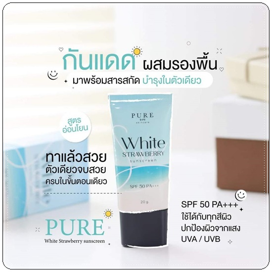 กันแดดเพียว PURE White Strawberry SPF 50 PA+++