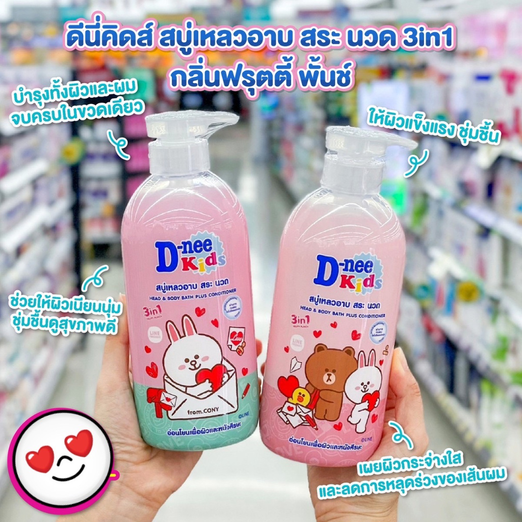 ดีนี่คิดส์ สบู่เหลวเด็ก อาบ สระ นวด 3in1/ ครีมอาบน้ำนมออแกนิค/ ครีมอาบน้ำโยเกิร์ต D-nee 450 มล.