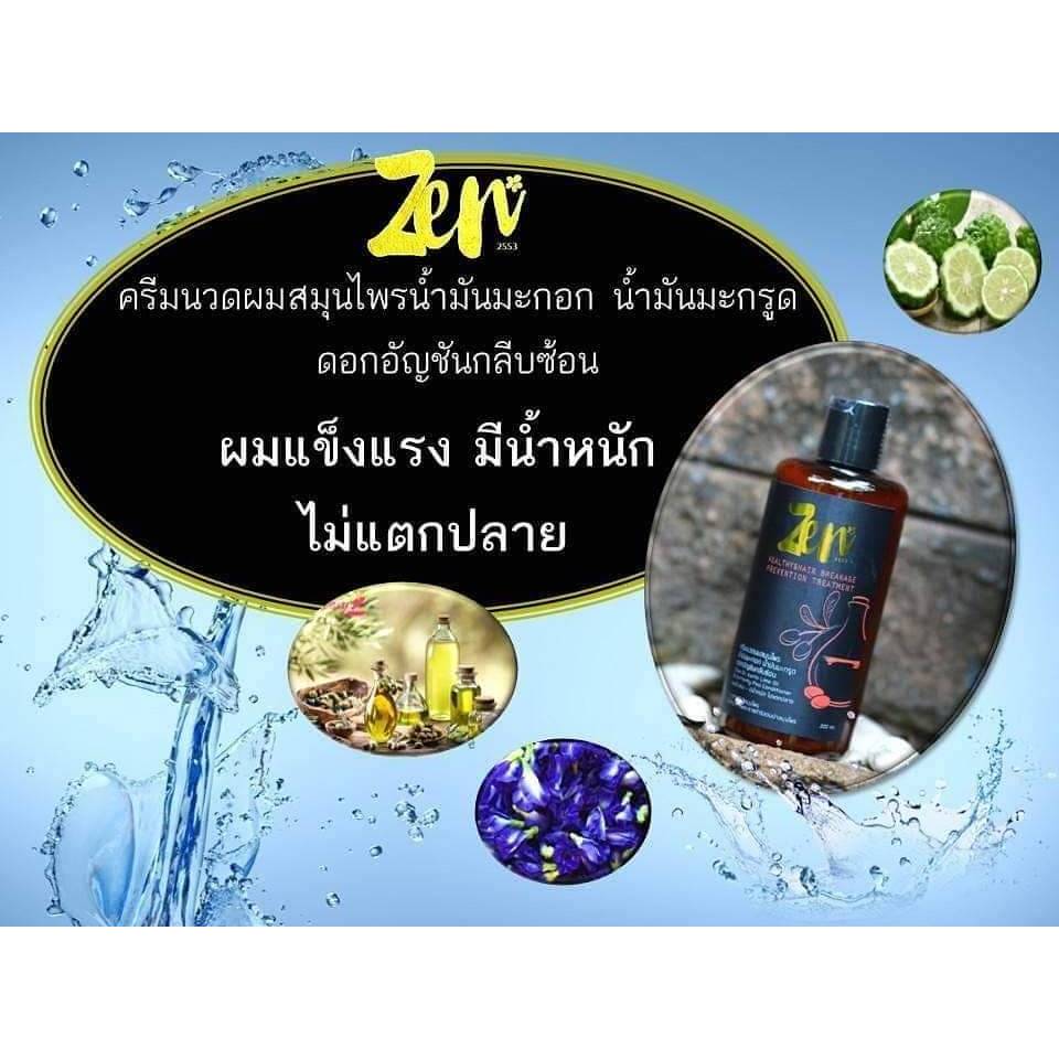 ZEN2553 ครีมนวดผมสมุนไพร น้ำมันมะกอก น้ำมันมะกรูด และอัญชันกลีบซ้อน OliveOil KaffirLime Oil ButterflyPeaConditioner300ml