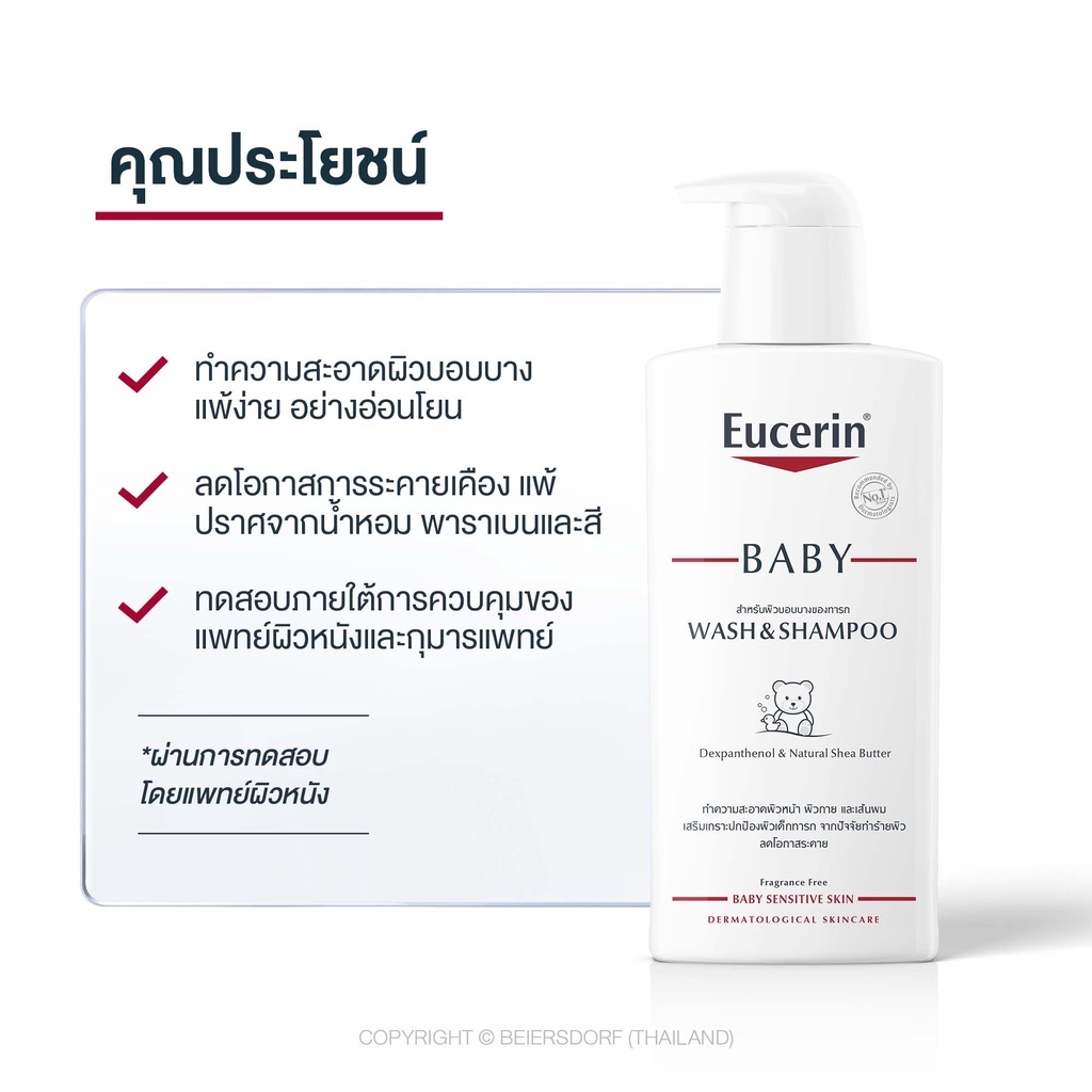 Eucerin pH5 BABY WASH & SHAMPOO 400 ML แชมพูทำความสะอาดผิวหน้า ผิวกายและเส้นผม สูตรอ่อนโยน เหมาะสำหรับผิวเด็ก