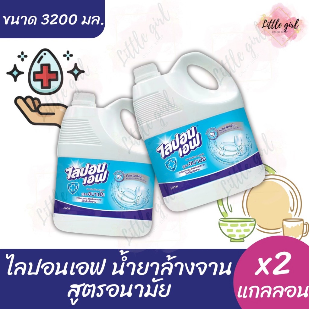 ไลปอนเอฟ น้ำยาล้างจานสูตรอนามัย แบบแกลลอน ขนาด 3,200 มล. บรรจุ 2 แกลลอน