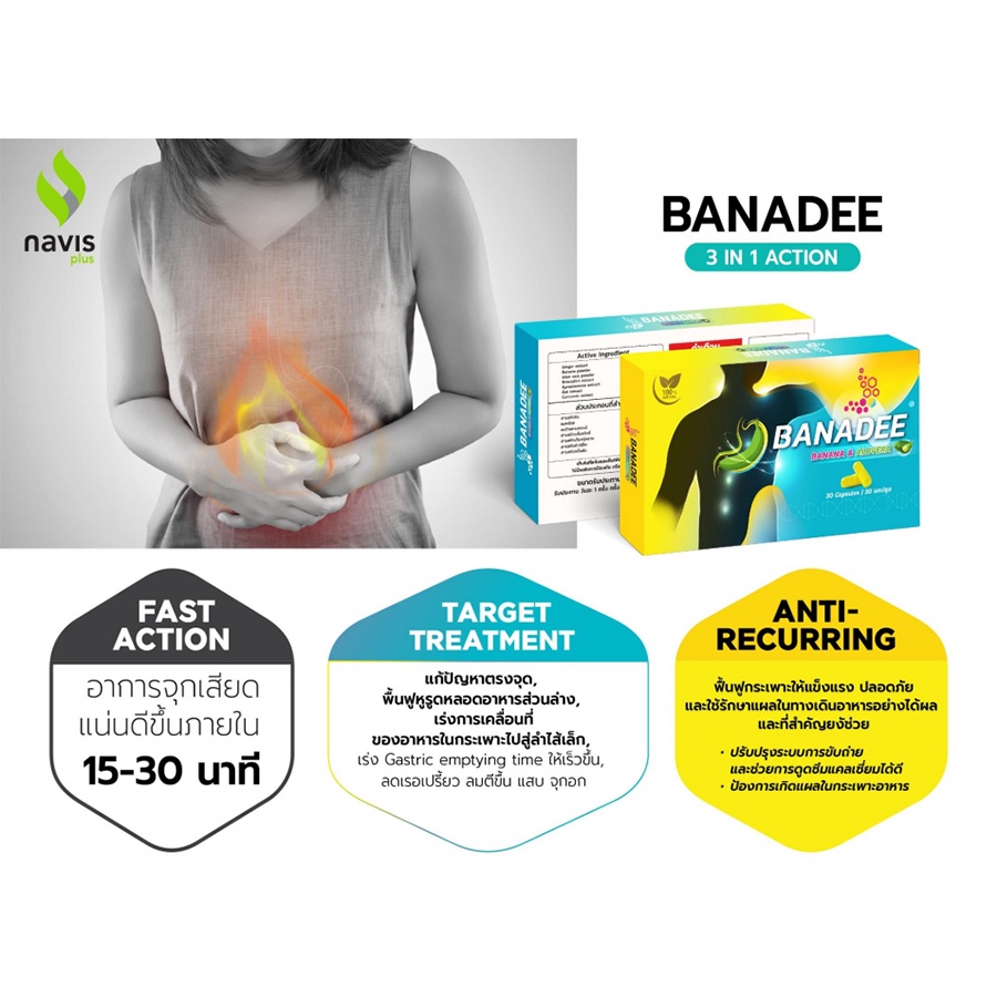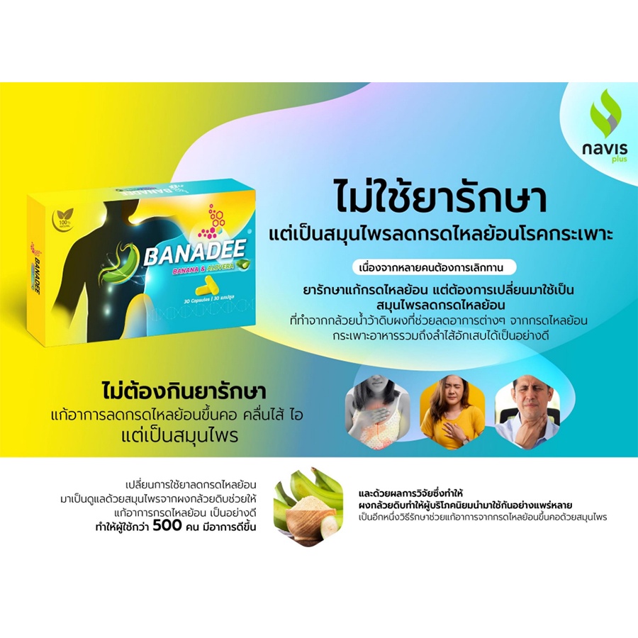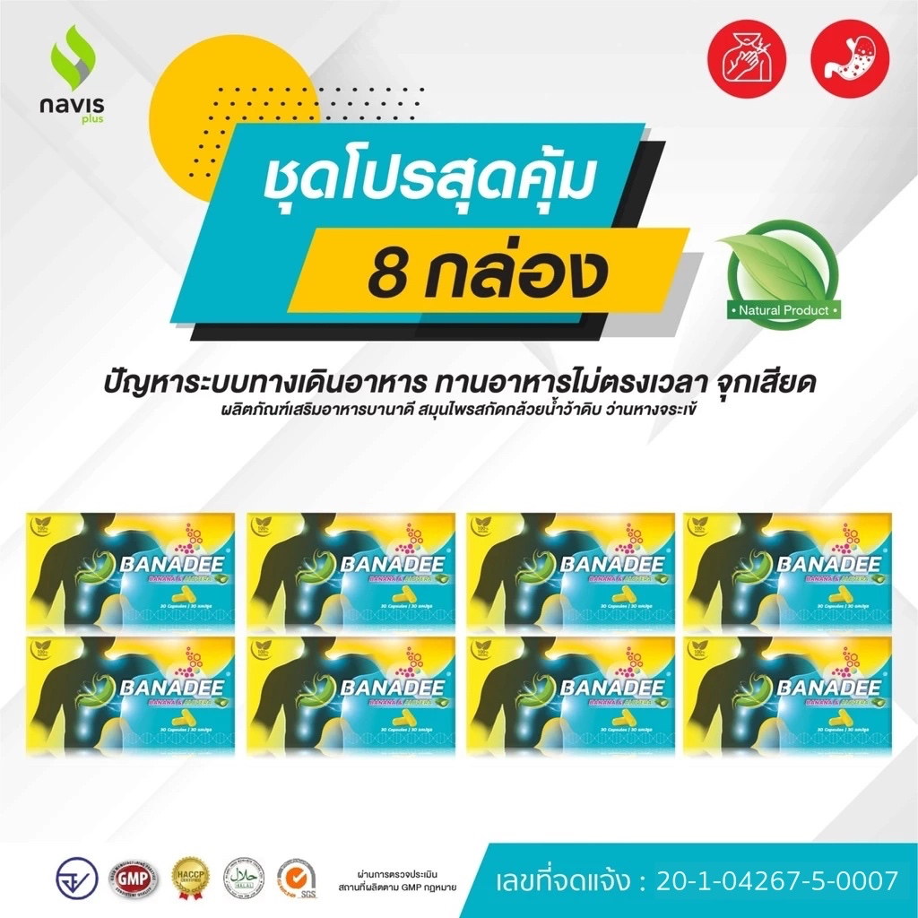 Banadee กล้วยน้ำว้าดิบ ว่านหางจระเข้ ดูแลอาการกรดไหลย้อน โรคกระเพาะ แสบร้อนกลางอก โปรฯ 8 กล่อง
