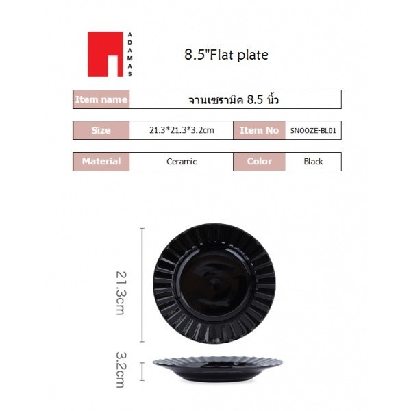 GlobalHouse ADAMAS จานเซรามิค 8.5 นิ้ว SNOOZE-BL01 สีดำ สินค้าของแท้คุณภาพดี