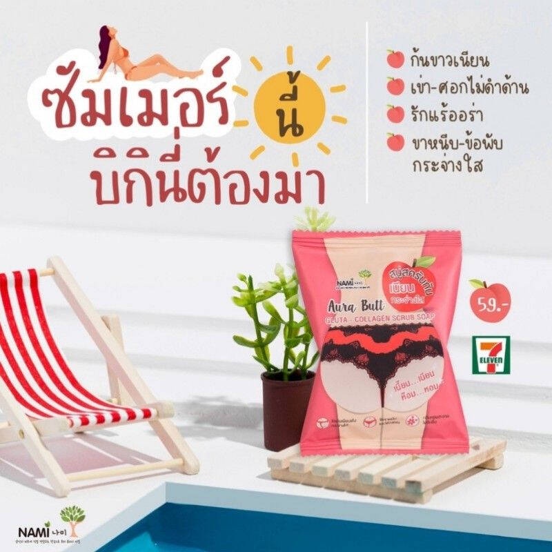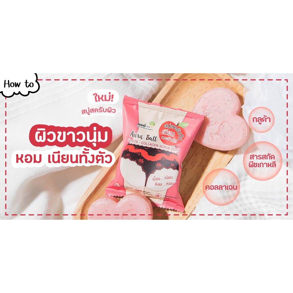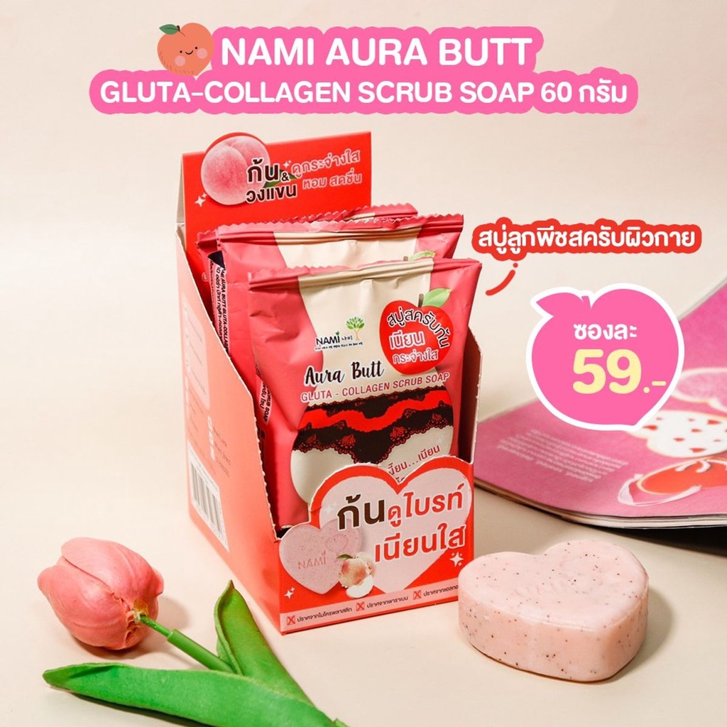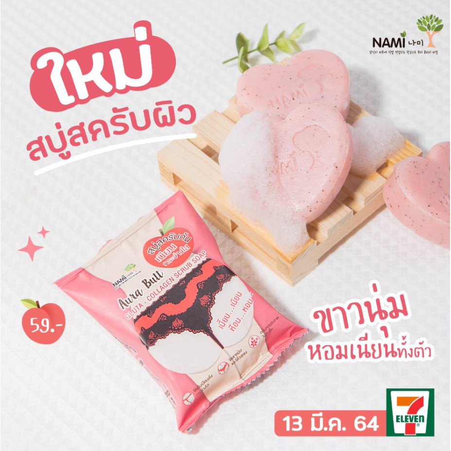 (1ก้อน) นามิ ออร่า บัทท์ กลูต้า-คอลลาเจน สครับ โซป 60กรัม