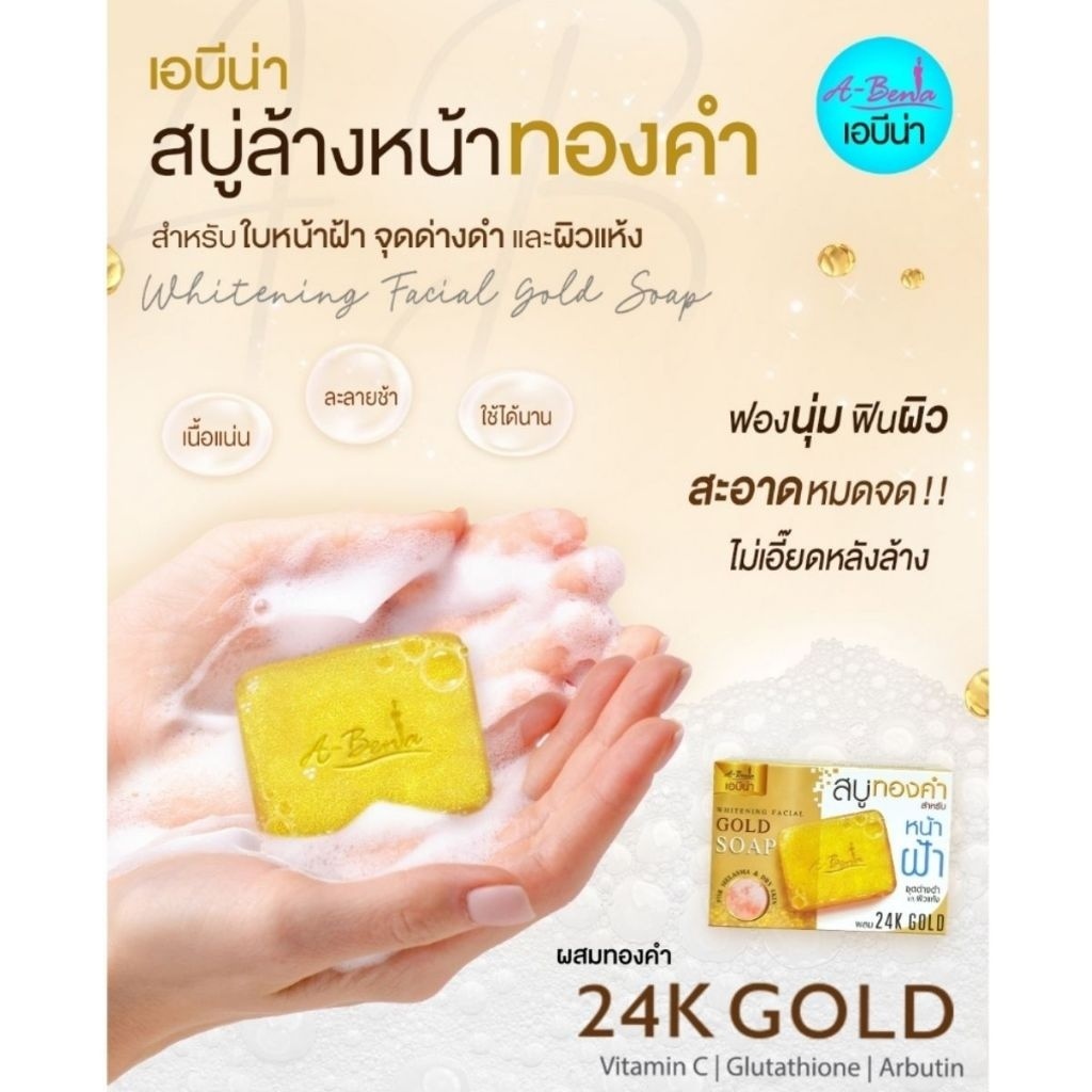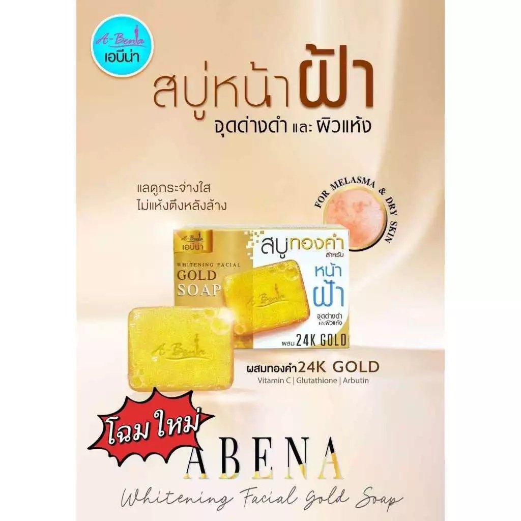 (1 ก้อน) Abena สบู่ทองคำ สำหรับหน้าฝ้า (ปริมาณ 30 กรัม)
