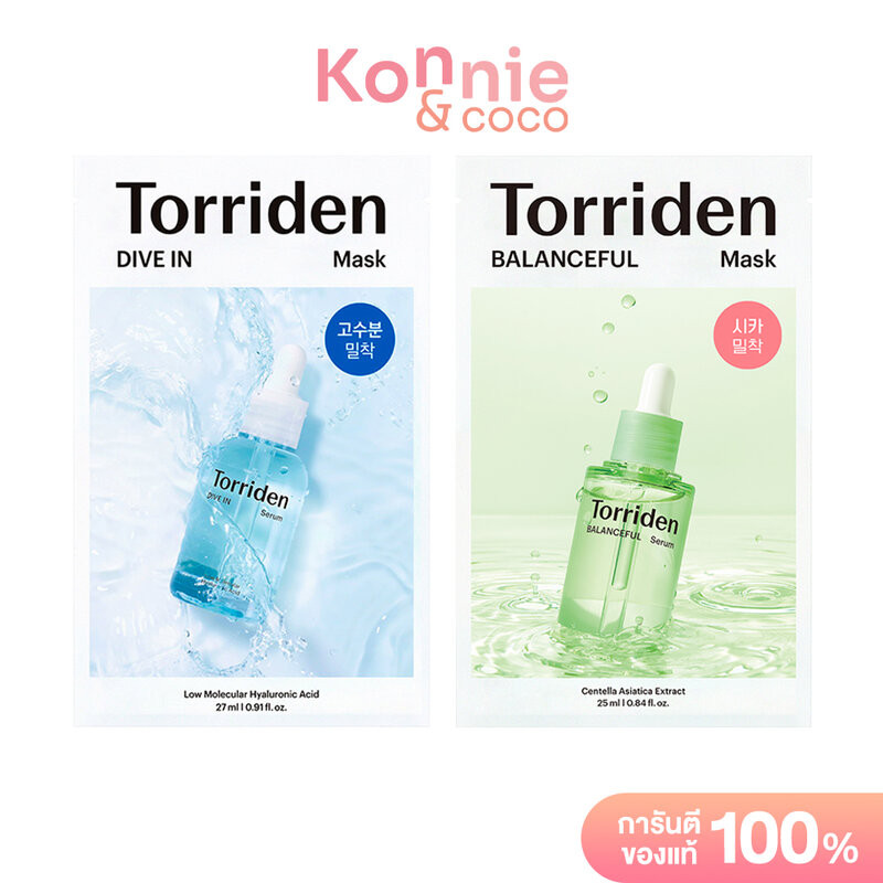 Torriden Mask Sheet ทอร์ริเดน แผ่นมาสก์หน้า (Hyaluronic Aid 27ml/Cica 25ml)