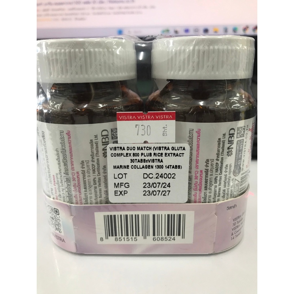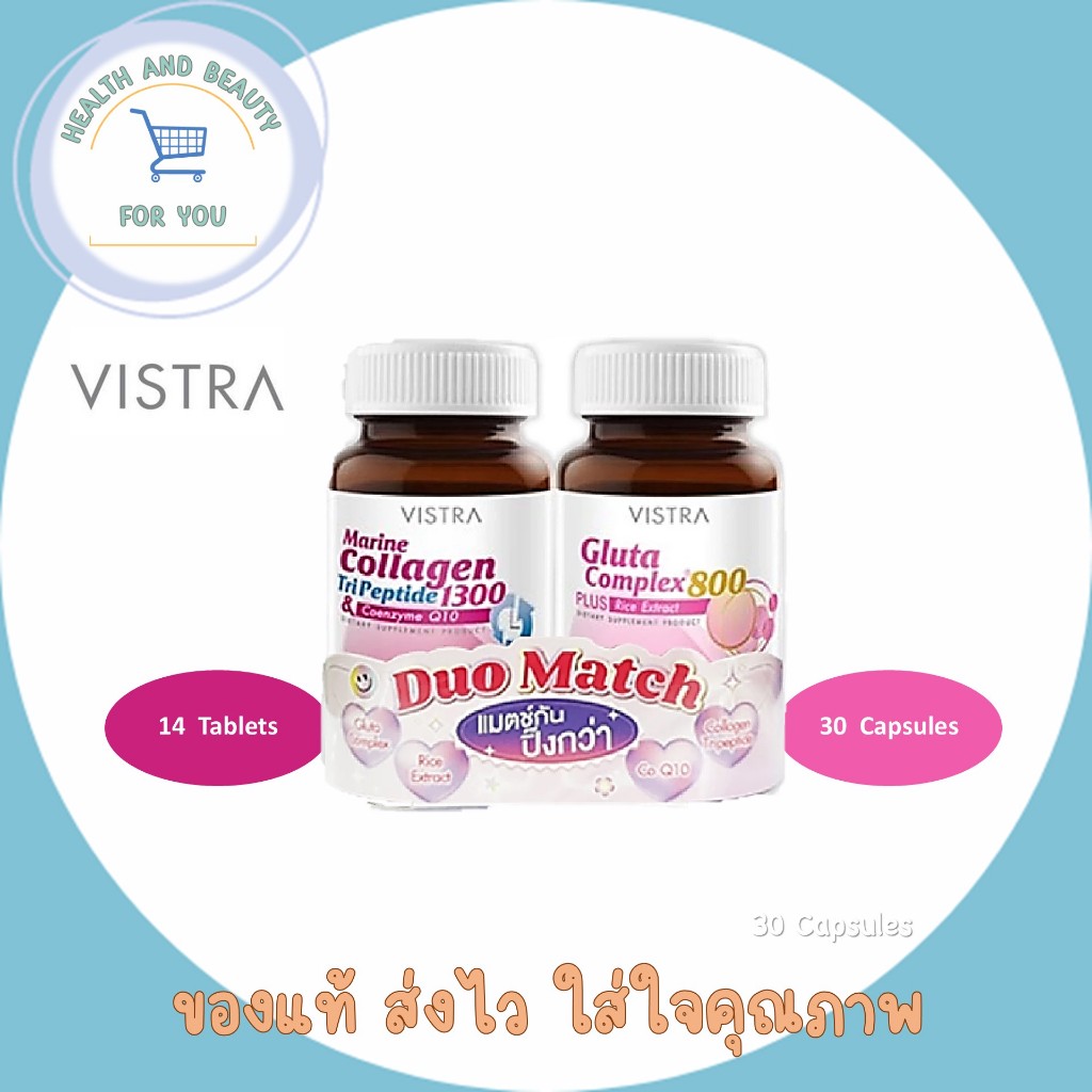 Vistra Duo Match Gluta Complex & Marine Collagen Tri Peptide เซ็ตคู่ (กลูต้า 30 เม็ด+คอลลาเจน 14 เม็ด)