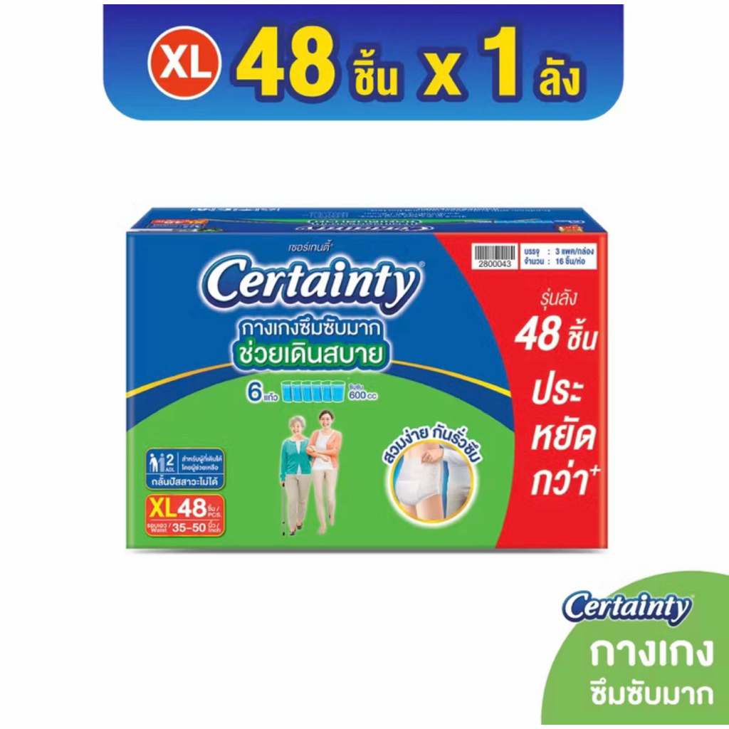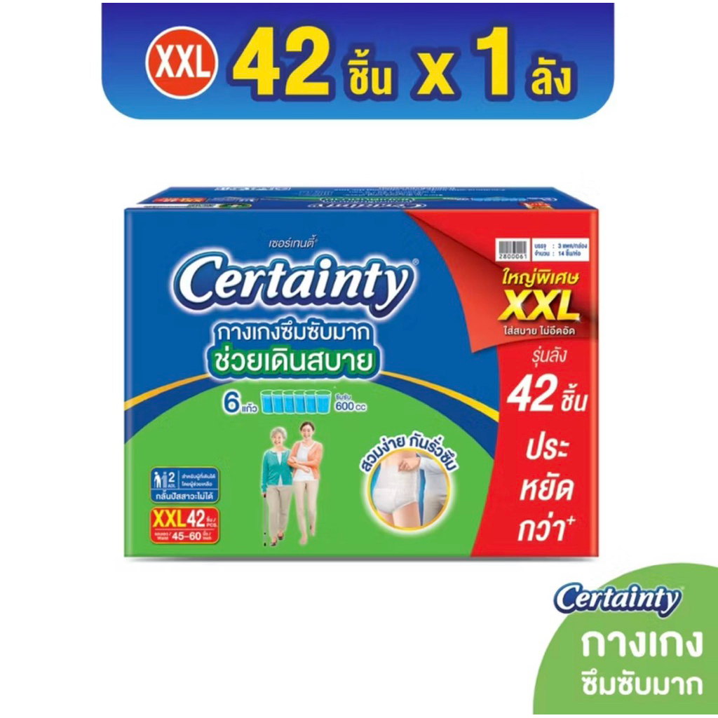 เซอร์เทนตี้ ซุปเปอร์แพ้นส ซึมซับมาก ไซส์ M-XXl ยกลังและแบ่งขาย