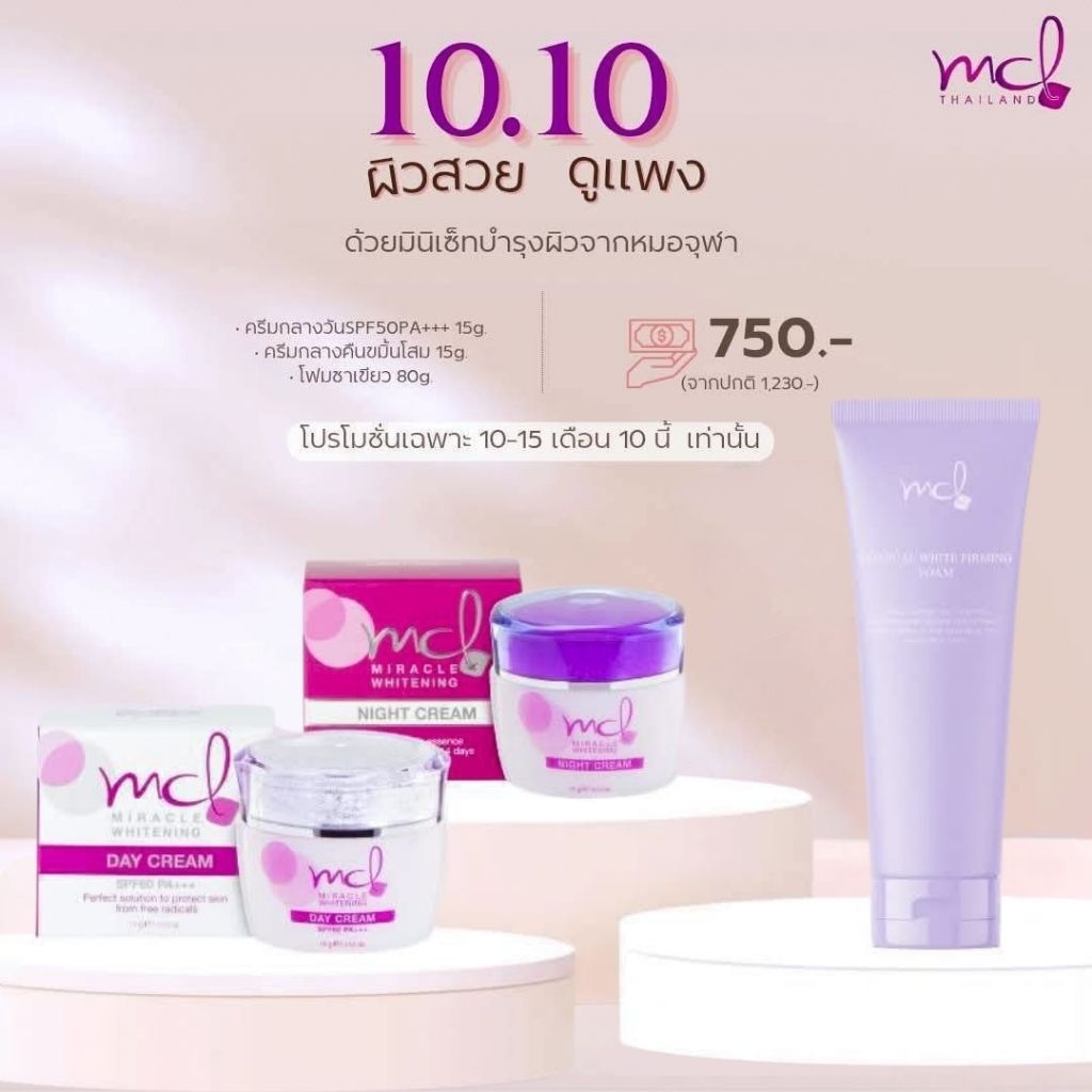 (โปรโมชั่น) MCL ชุดเซ็ตบำรุงผิวลดฝ้ากระจุดดำ3ชิ้น ครีมกันแดด ครีมกลางคืนและโฟมล้างหน้า