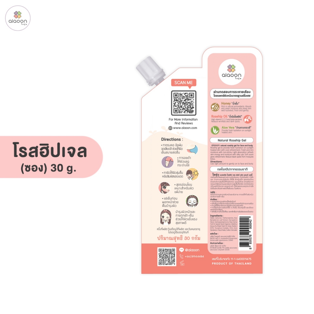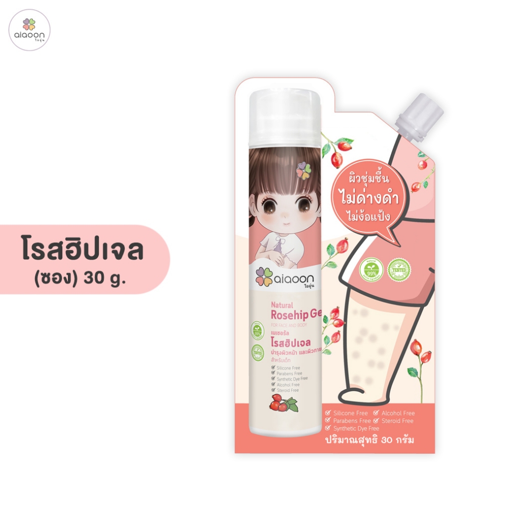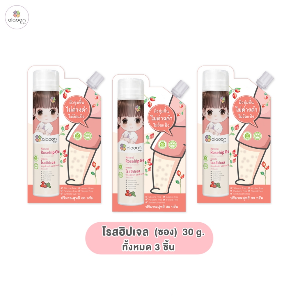 ไออุ่น โรสฮิป เจล บำรุงผิว "ลดรอยดำ" 30 g. (aiaoon Natural Rosehip Gel for Face and Body)*แบบซอง*
