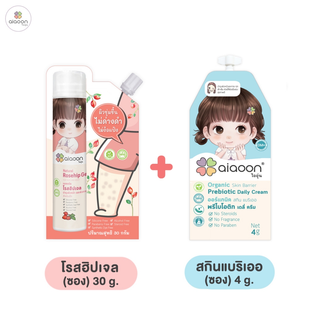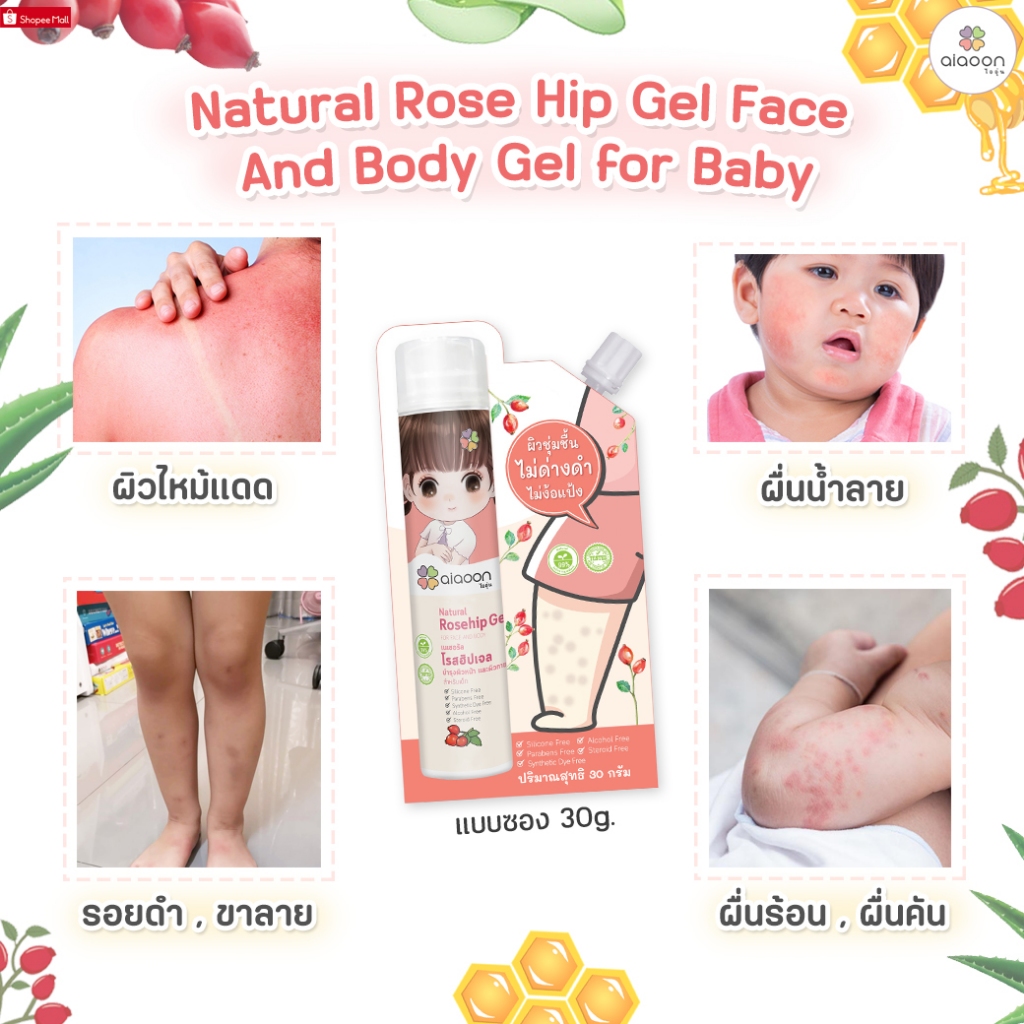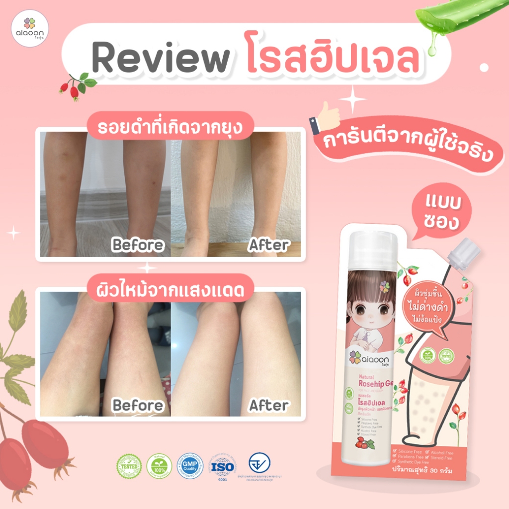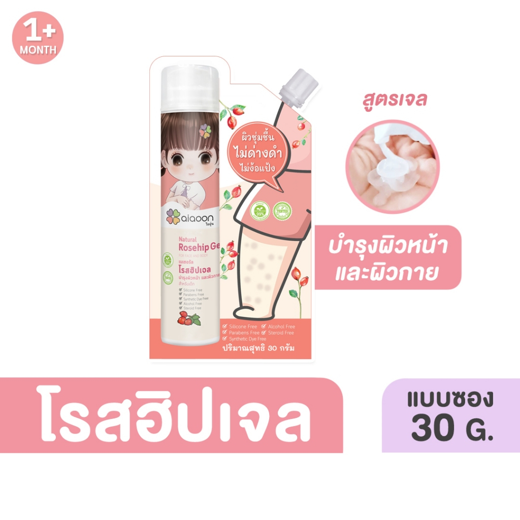 ไออุ่น โรสฮิป เจล บำรุงผิว "ลดรอยดำ" 30 g. (aiaoon Natural Rosehip Gel for Face and Body)*แบบซอง*