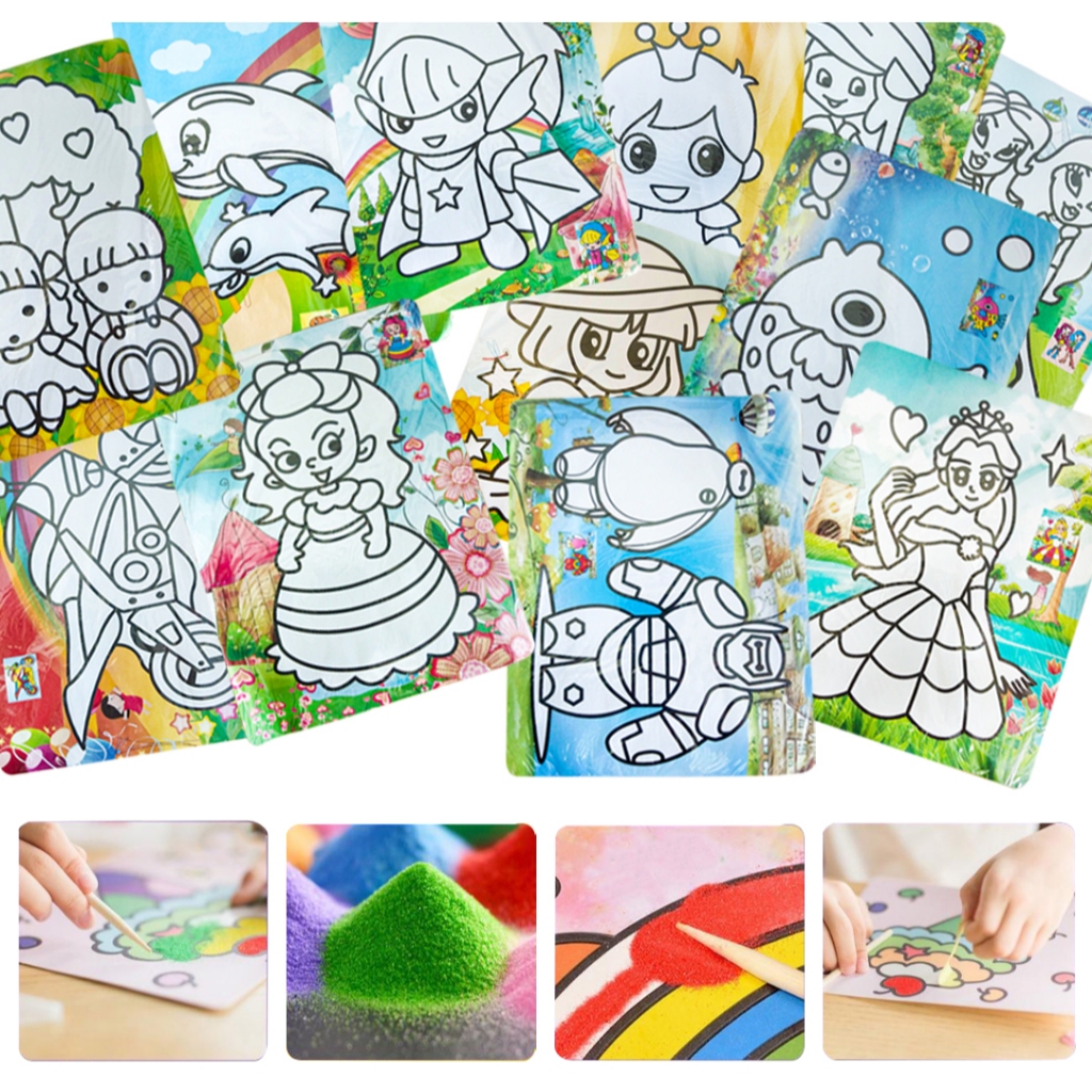 ⭐ทรายระบายสีการ์ตูน⭐มี4ขนาดให้เลือก📌สุ่มลาย✅พร้อมส่งในไทย ชุดระบายสีทราย ของเล่นเด็ก ของขวัญ ของแจก