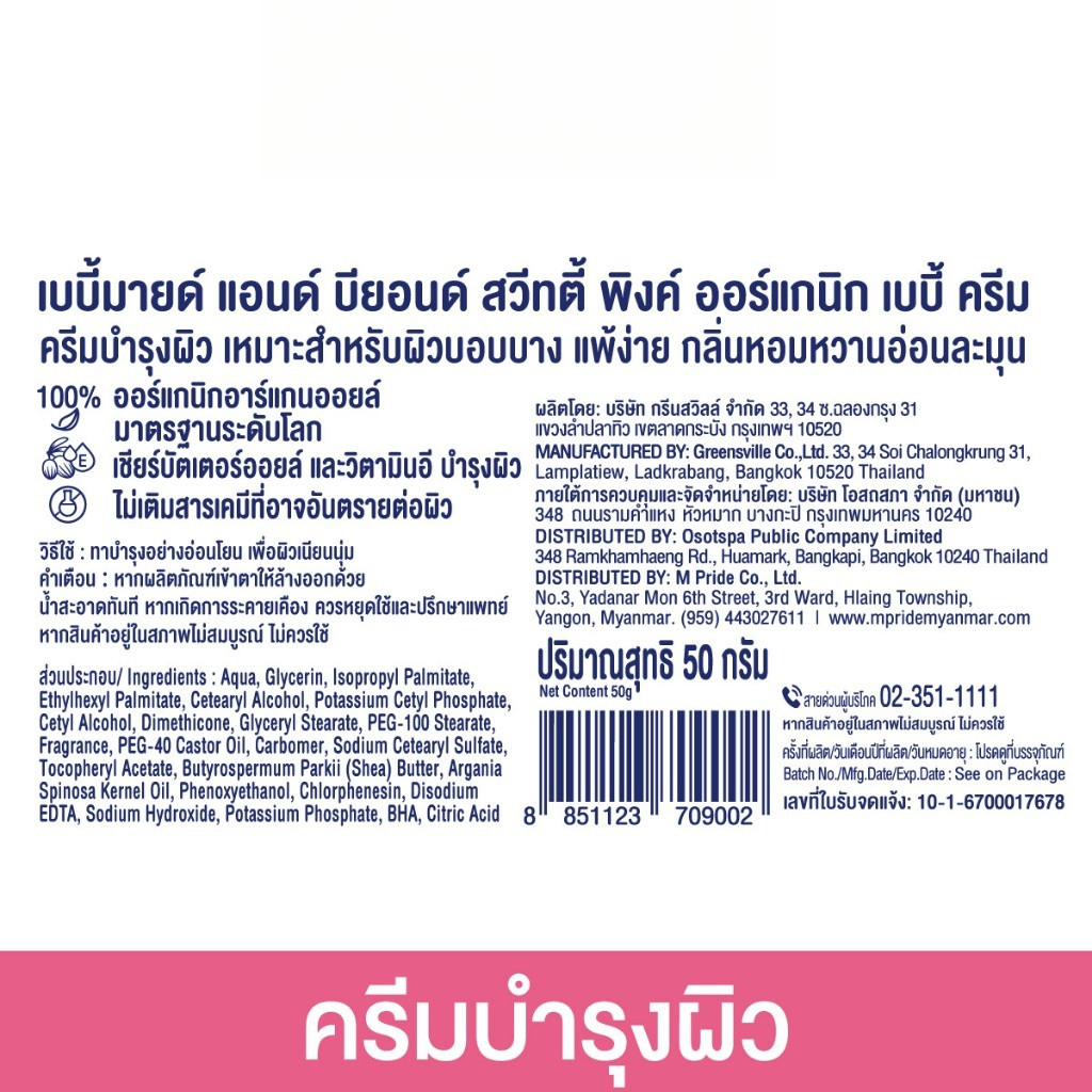 [มี3แพ็คให้เลือก]เบบี้มายด์ครีม สวีทตี้พิ้ง ออร์แกนิก 50กรัม/ Babi Mild Cream Sweet Pink Organic 50g