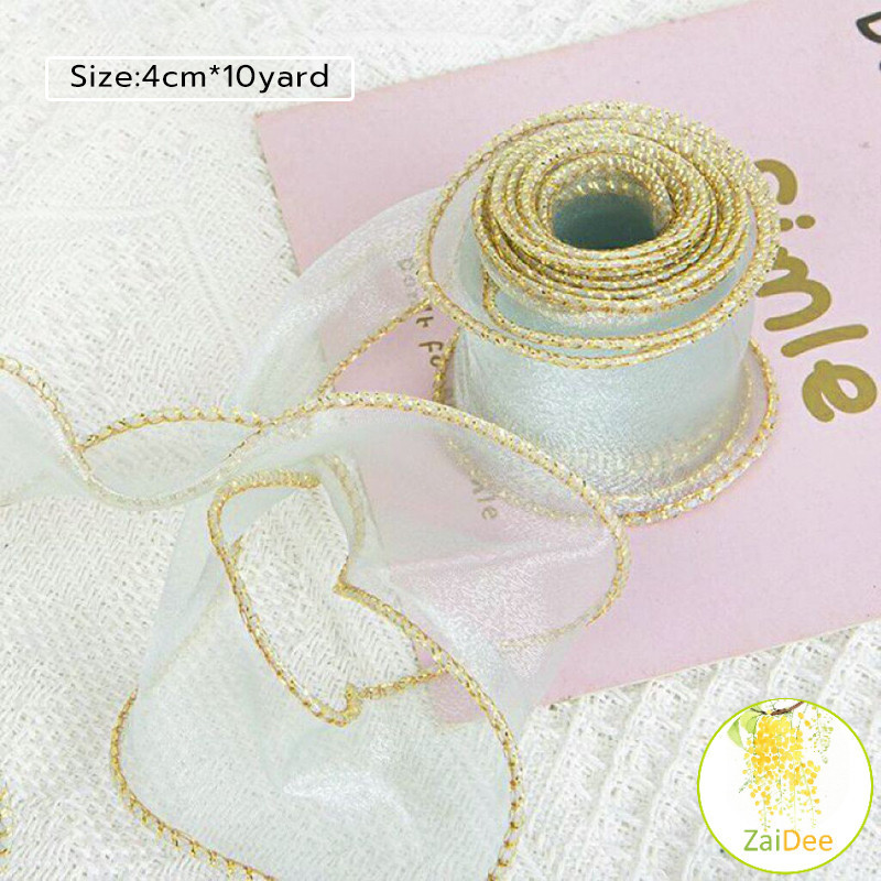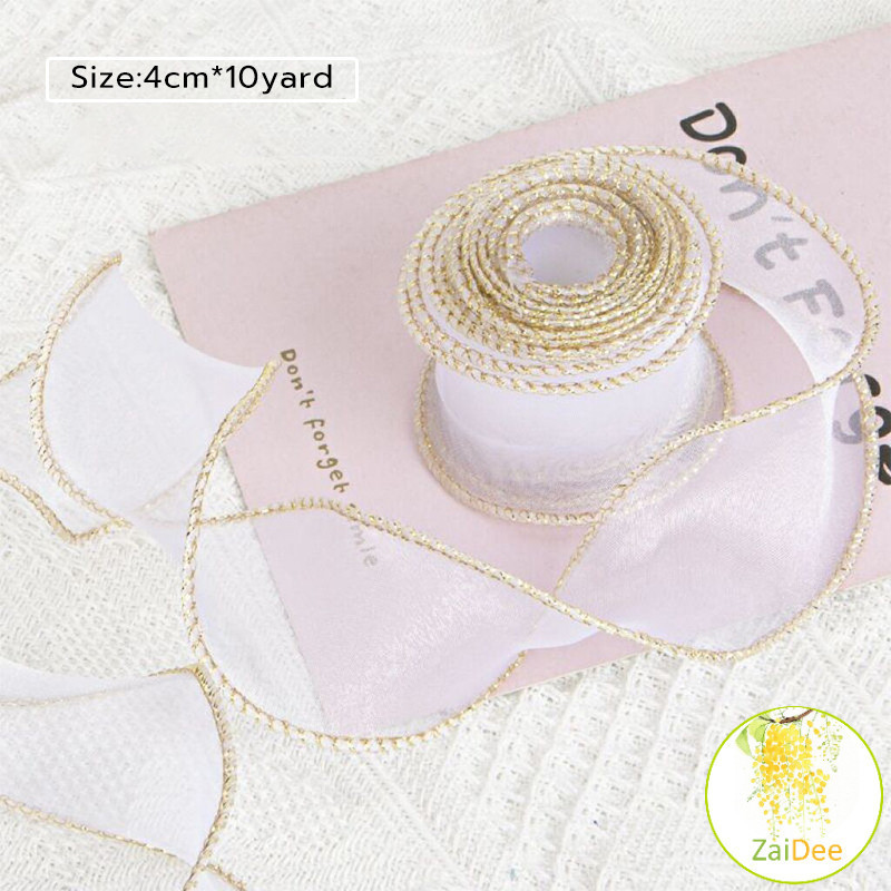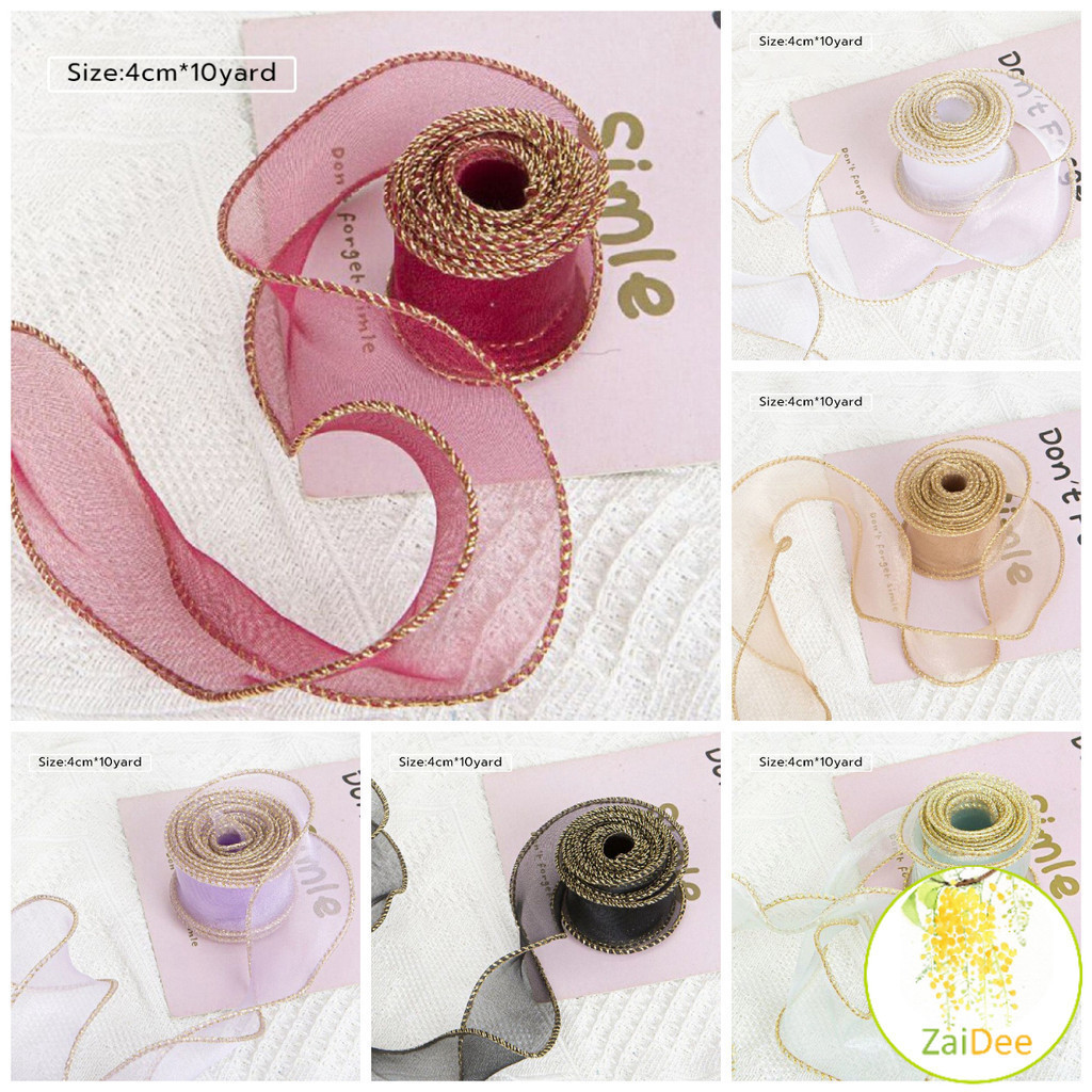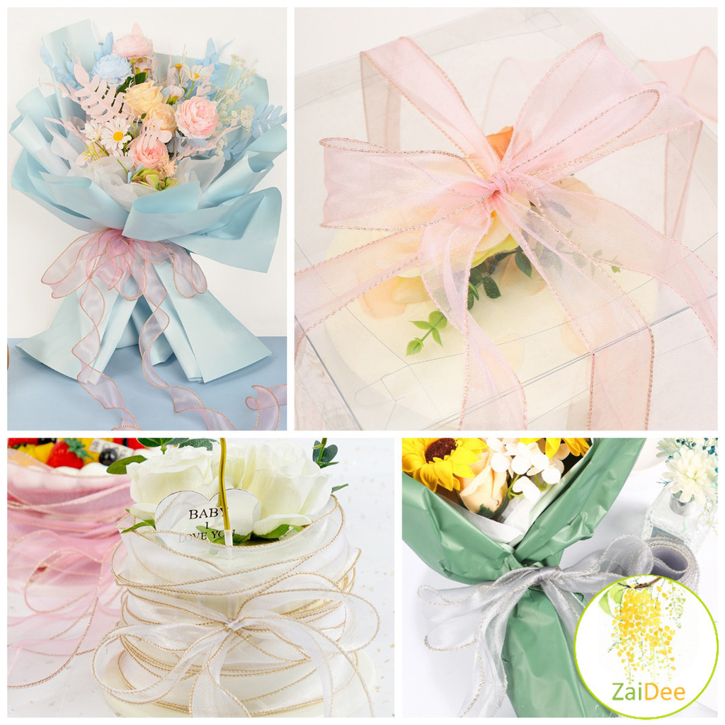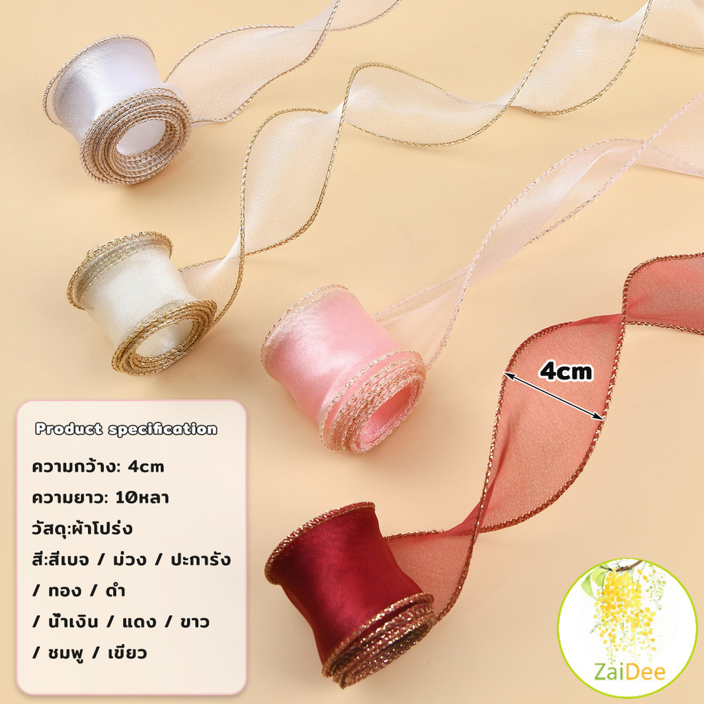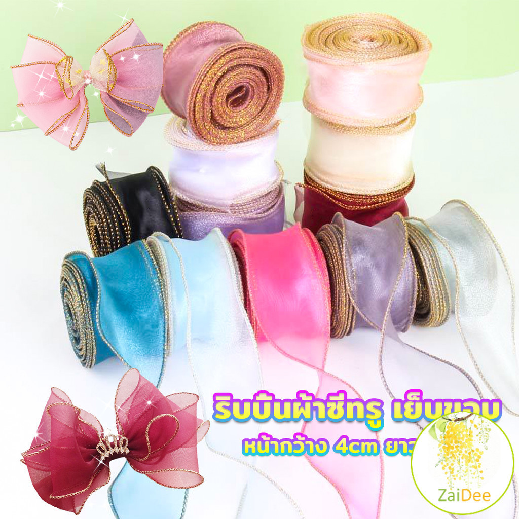 ริบบิ้นผ้าใยแก้ว ผ้าโปร่ง เย็บขอบ หน้ากว้าง 4 cm สําหรับตกแต่งเค้ก ริบบิ้นโปร่ง Organza Ribbon