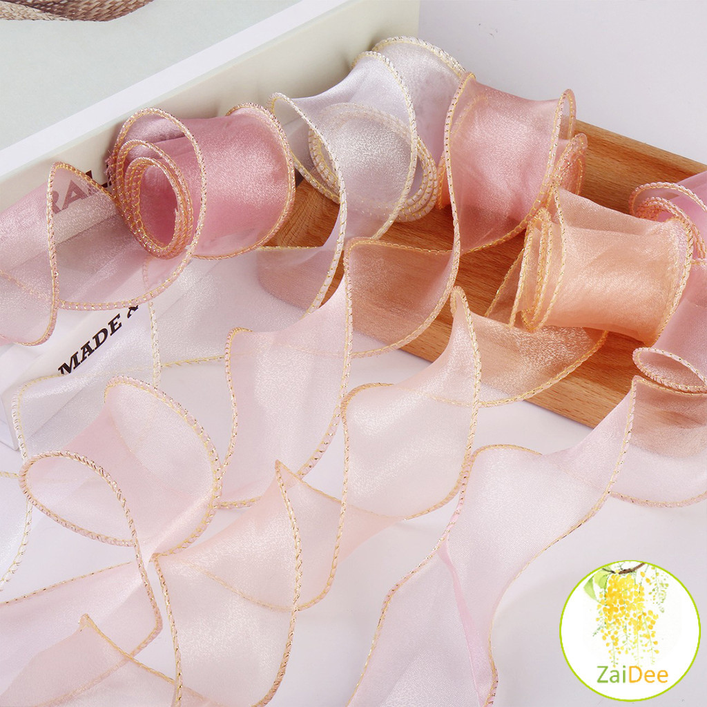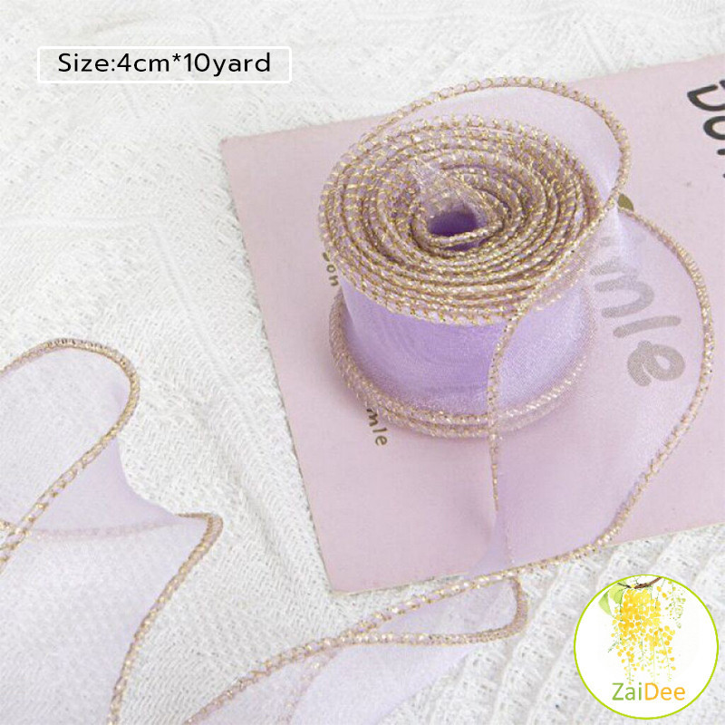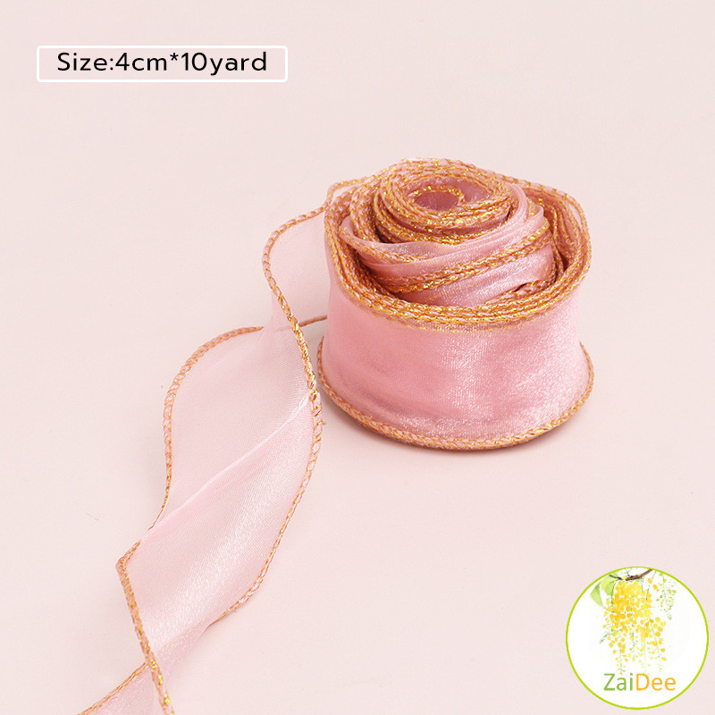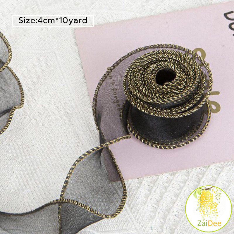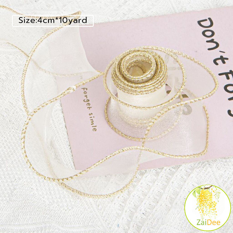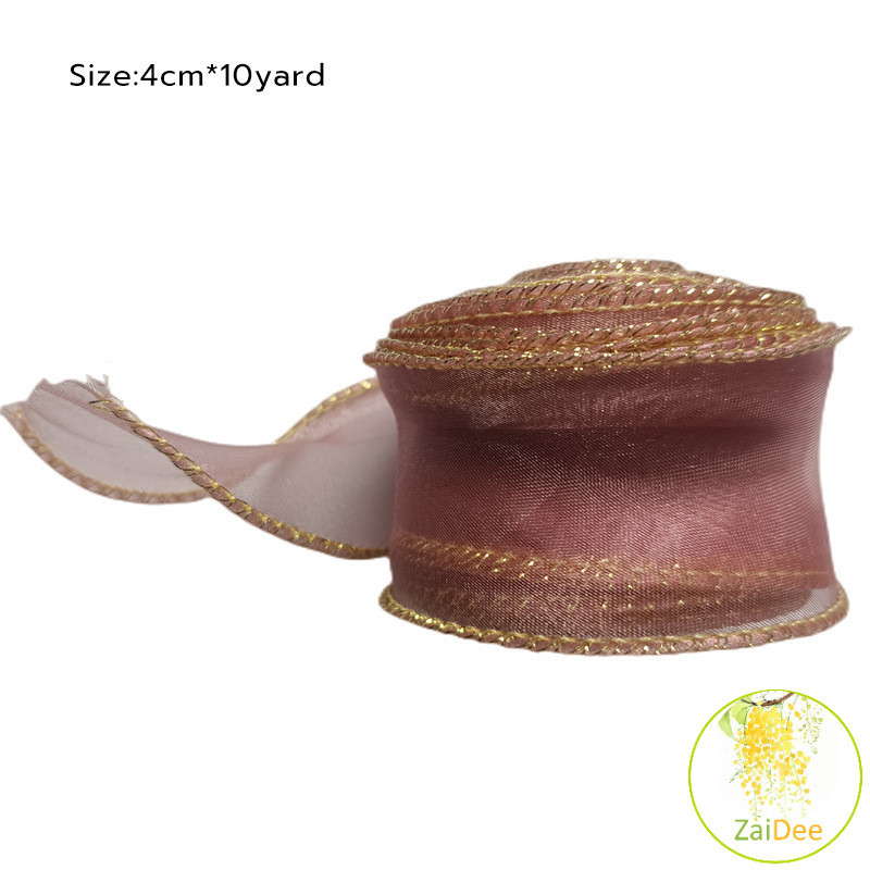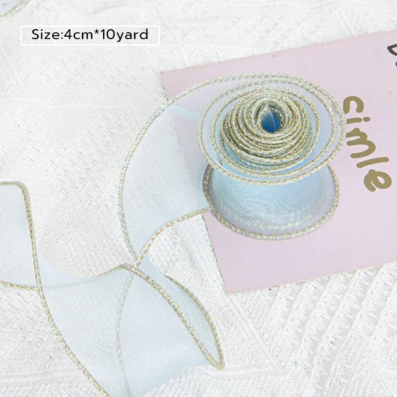ริบบิ้นผ้าใยแก้ว ผ้าโปร่ง เย็บขอบ หน้ากว้าง 4 cm สําหรับตกแต่งเค้ก ริบบิ้นโปร่ง Organza Ribbon