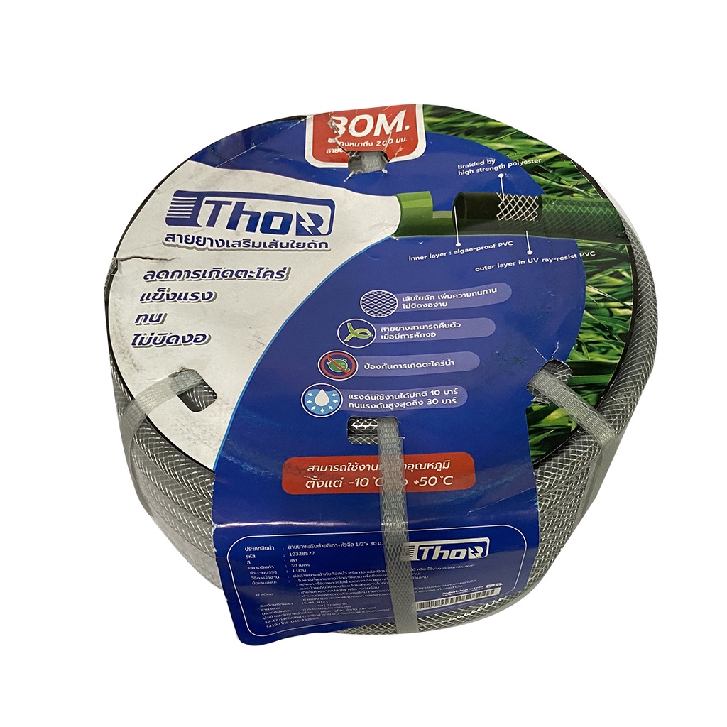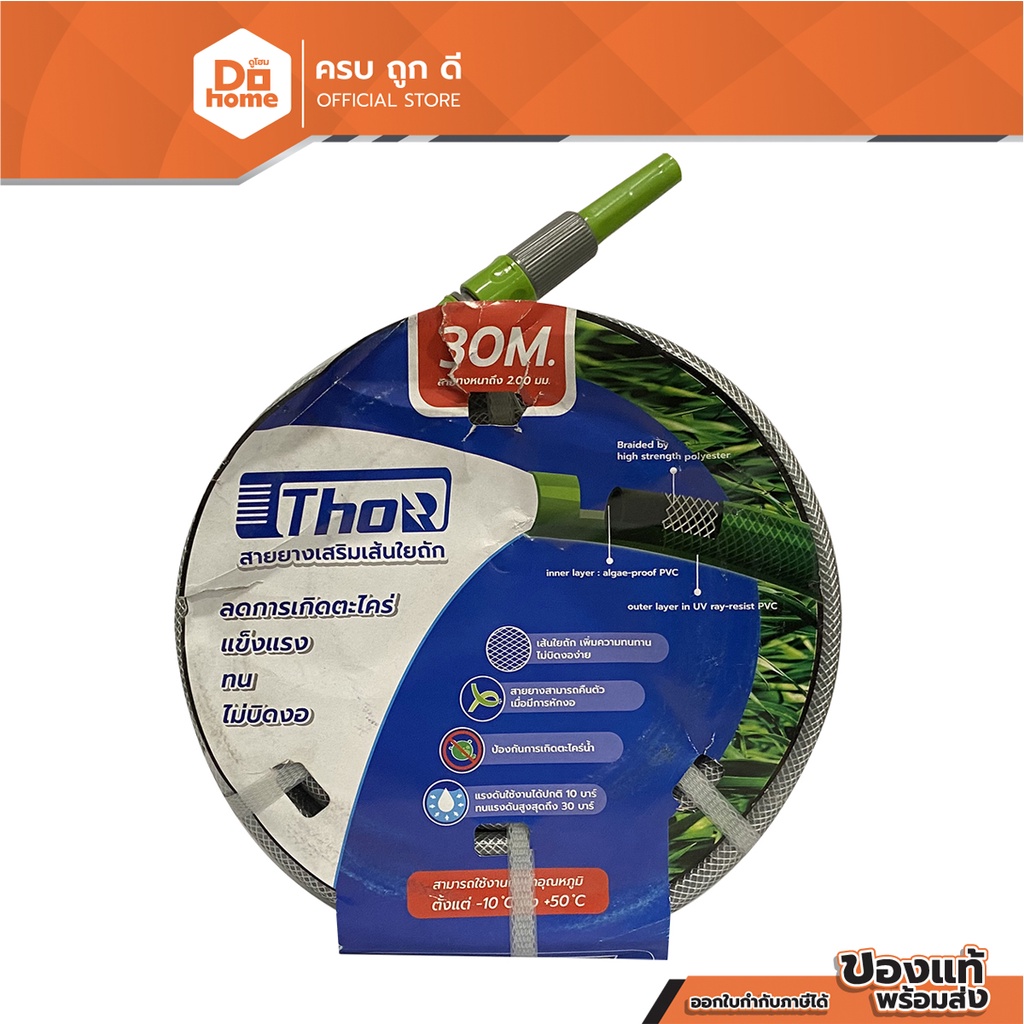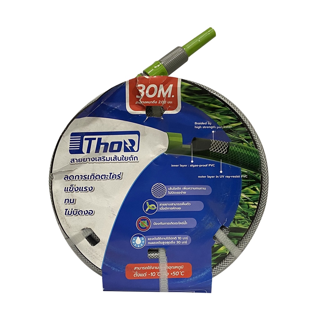 THOR สายยางเสริมด้ายสีเทา พร้อมหัวฉีด 1/2 นิ้ว ยาว 30 ม. |ROL|