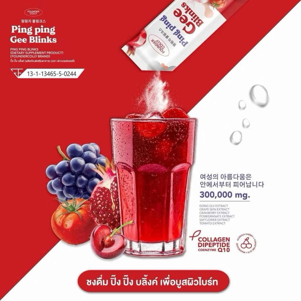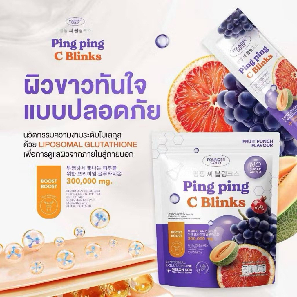 กลูต้าปิ๊งปิ๊ง กลูต้าไลโปโซมอล+Q10+SOD & Ping Ping Gee Blinks ปิ๊งปิ๊ง จี บริ้ง(ตรา ฟาวเดอร์คอลลี่ 30 ซอง)