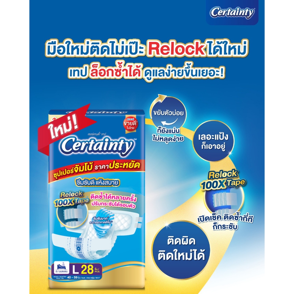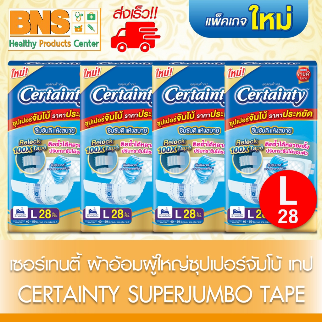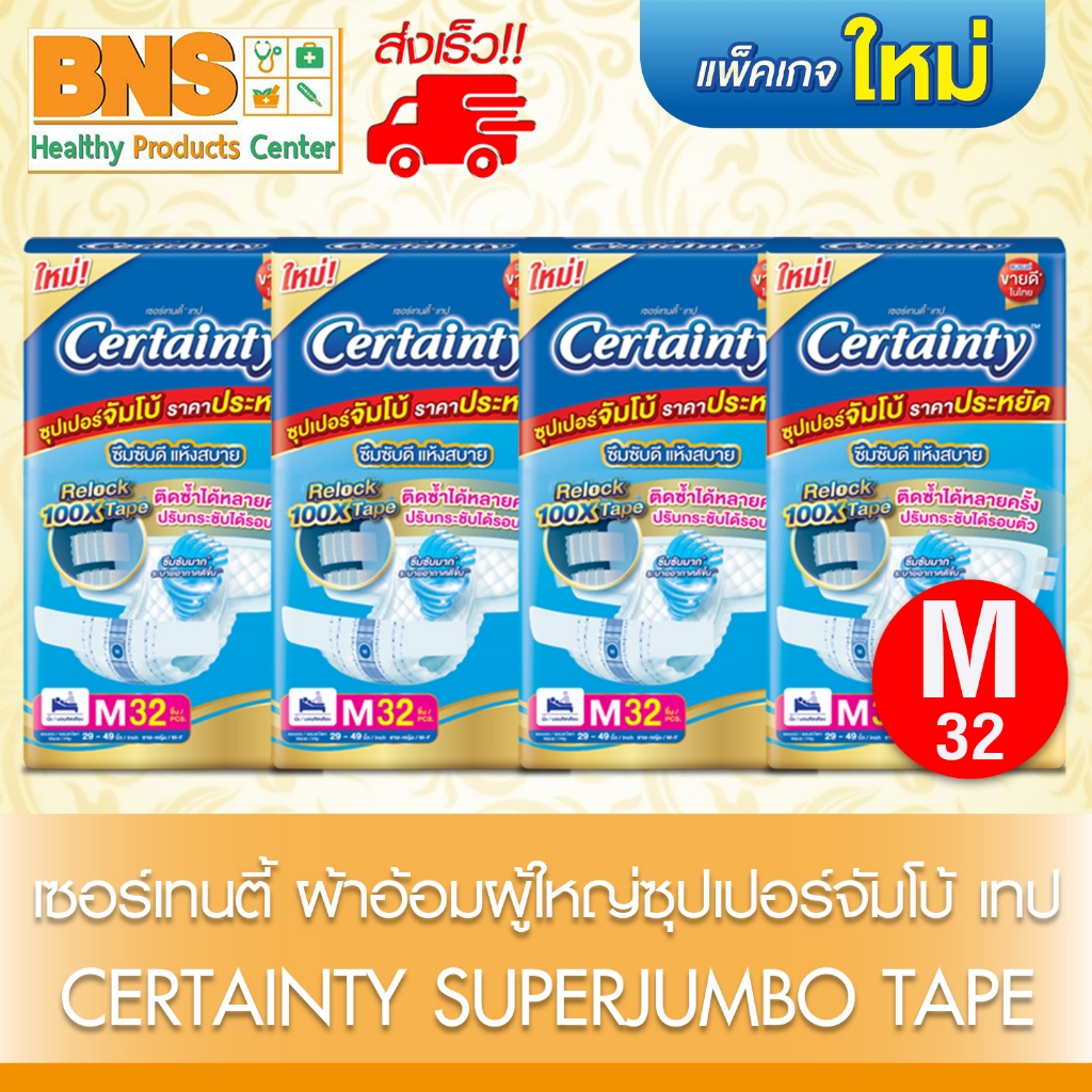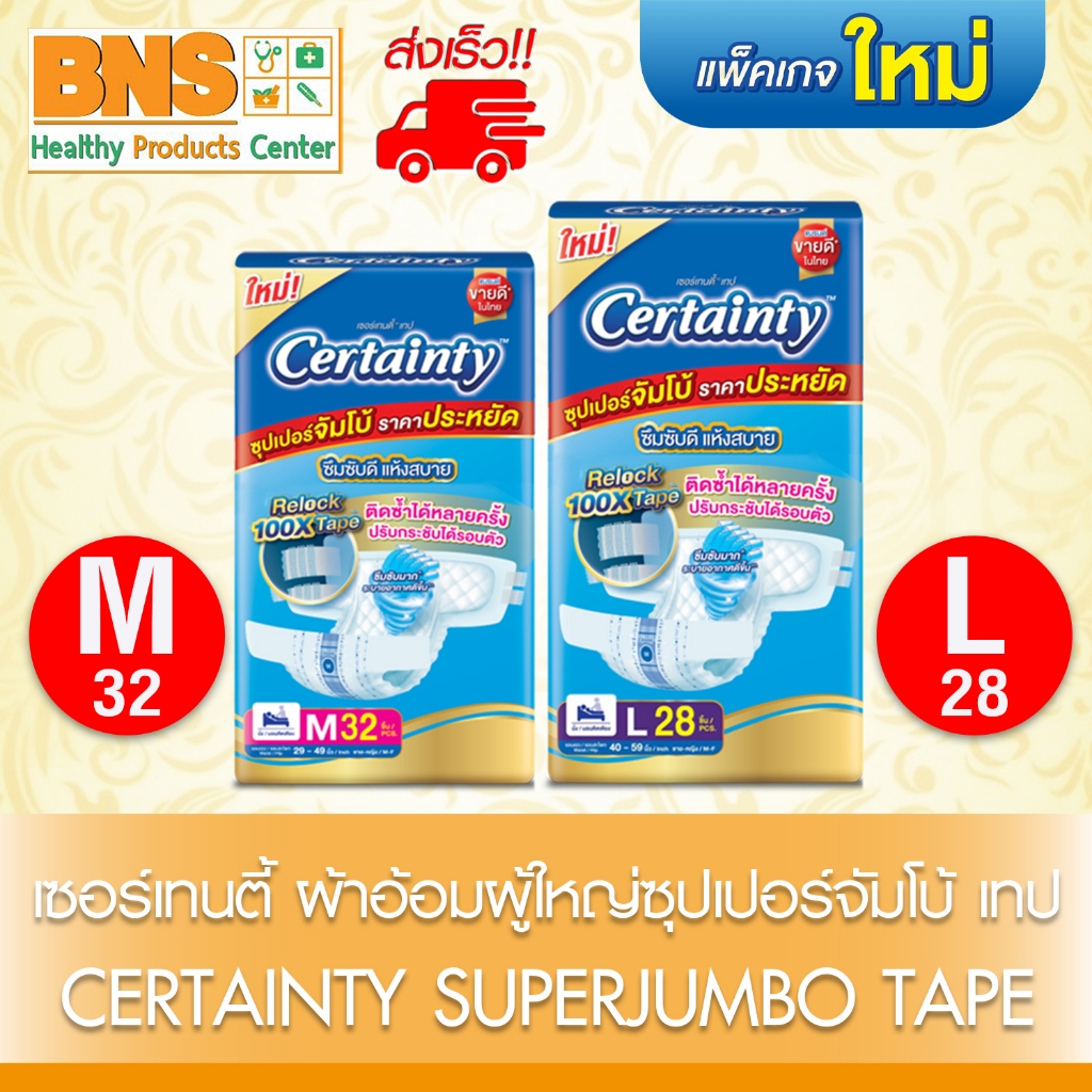 (ยกลัง) Certainty เซอร์เทนตี้ ผ้าอ้อมผู้ใหญ่แบบเทปจัมโบ้ (ไซส์ M : 1 ห่อ 32 ชิ้น) (ไซส์ L : 1 ห่อ 28 ชิ้น)