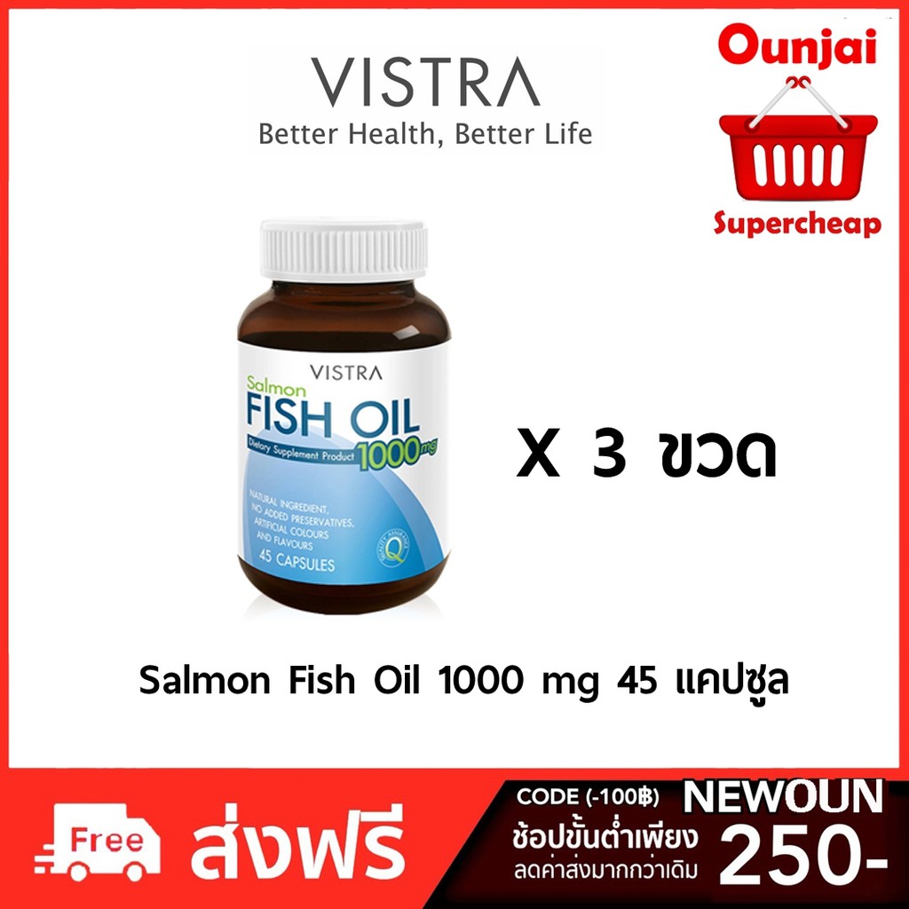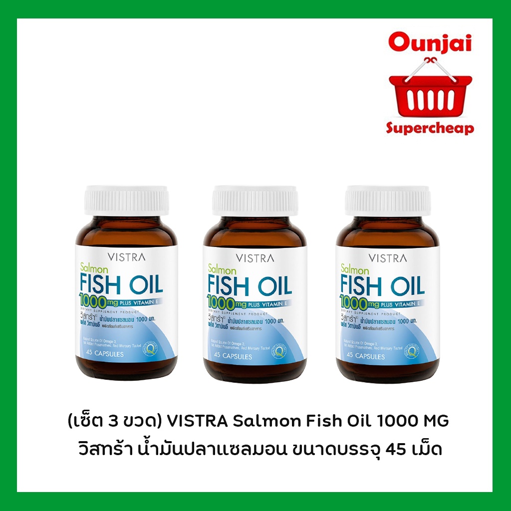 (เซ็ต 3 ขวด) VISTRA Salmon Fish Oil 1000 MG วิสทร้า น้ำมันปลาแซลมอน ขนาดบรรจุ 45 เม็ด