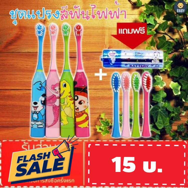 FLASH SALE! ชุดแปรงสีฟันไฟฟ้า สำหรับเด็ก แถมฟรีถ่าน AAและหัวแปรงสำรอง มีระบบสั่น 4 แบบ แปรงฟันเด็ก พร้อมส่งทันที!
