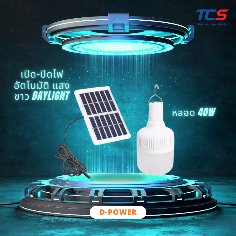 d-power โคมไฟโซล่าเซลล์แผงโมโน รุ่น SO-02 หลอด 40W ชาร์จด้วยแสงอาทิตย์ เปิด-ปิดไฟอัตโนมัติ แสงขาว Daylight รับประกัน1ปี