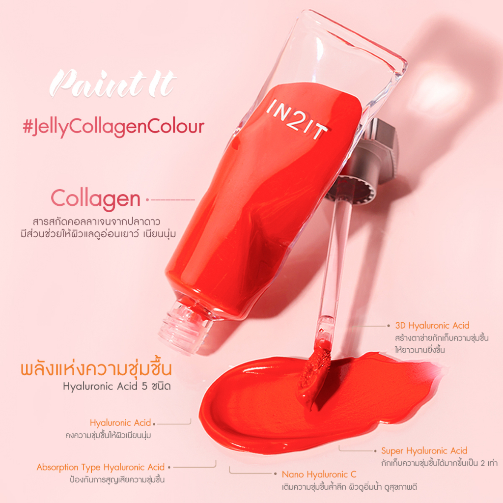 ถูก/แท้/มีไลฟ์ ลิป IN2IT Paint It Jelly Collagen Colour อินทูอิท ลิปคอลลาเจน บลัชออน เนื้อเจลลี่ ติดทน อิ่มน้ำ ชุ่มชื้น