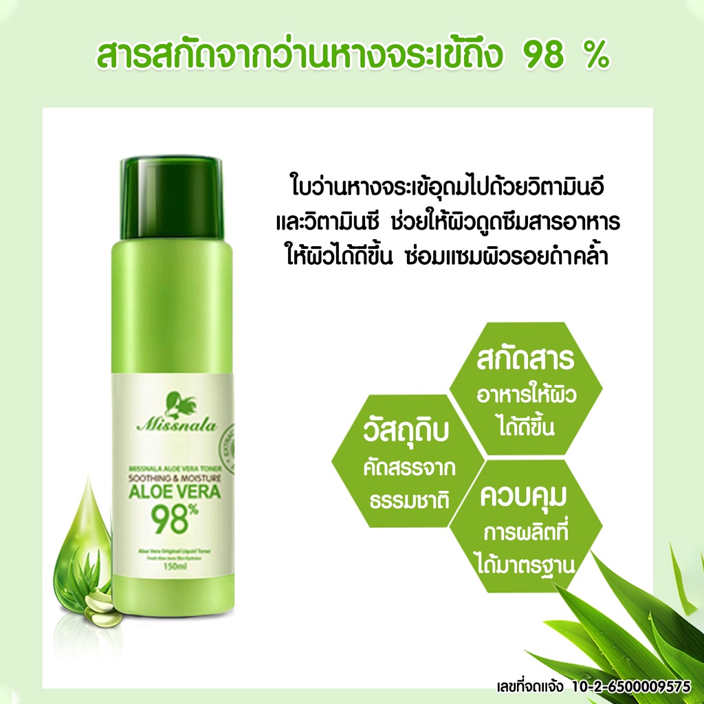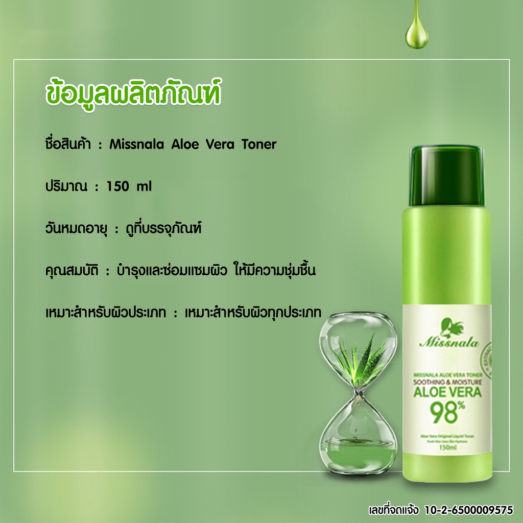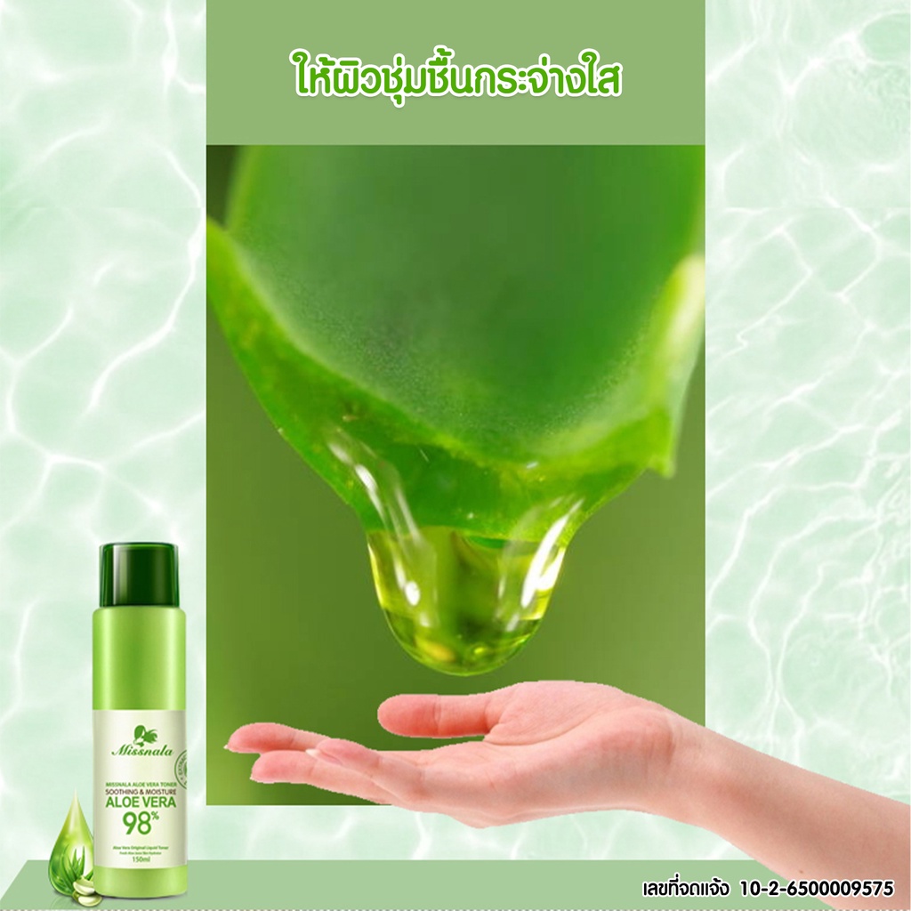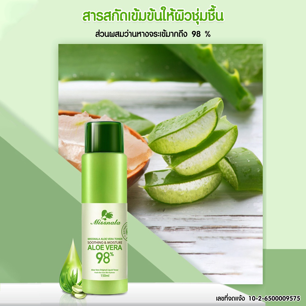 { เลขที่จดแจ้ง } เลขที่จด แจ้ง ALOE VERA TONER โทนเนอร์ สารสกัดจากว่านหางจระเข้ 98% ขนาด 150 ml.