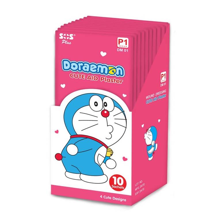 SOS Plus Doraemon P1 พลาสเตอร์ ปิดแผล ลายโดเรมอน ขนาด 1.9 x 5.6 ซม ( บรรจุ 8 แผ่น/ซอง ) [ 1 ซอง ]