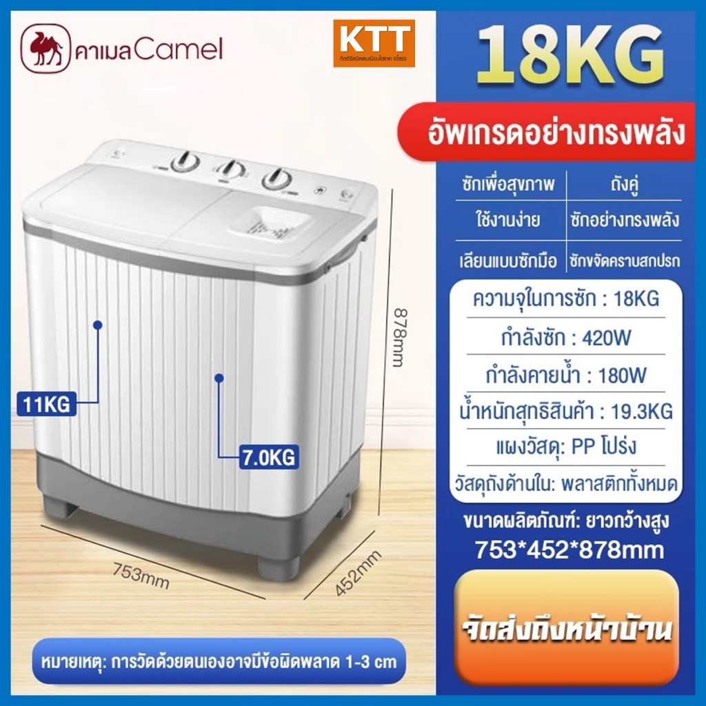 CAMELเครื่องซักผ้า เครื่องซักผ้ากึ่งอัตโนมัติ 18 KG ถังคู่ เครื่องซักผ้า mini เครื่องซักผ้า 2 ถัง
