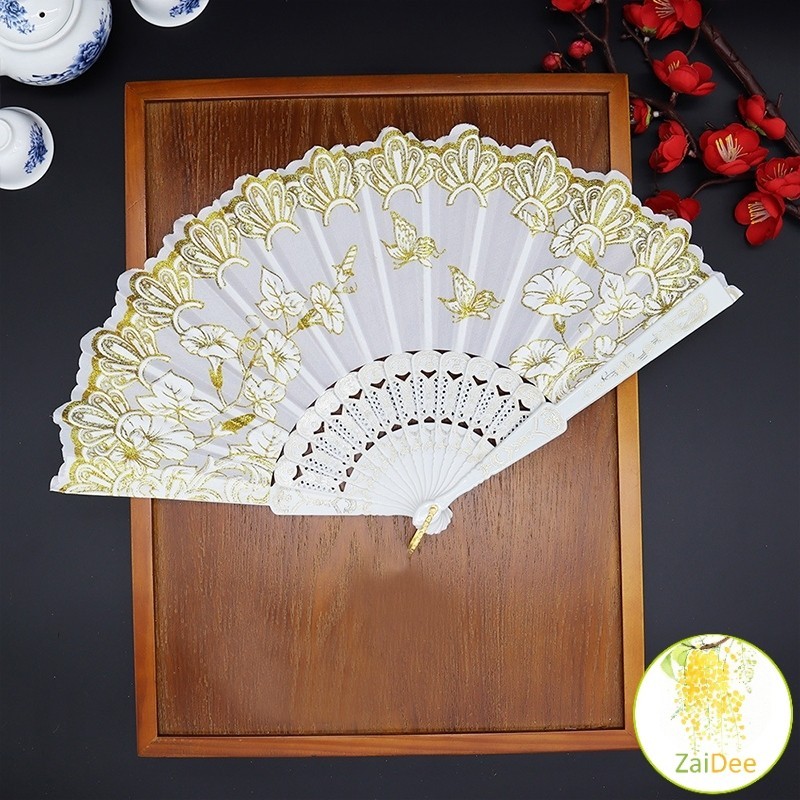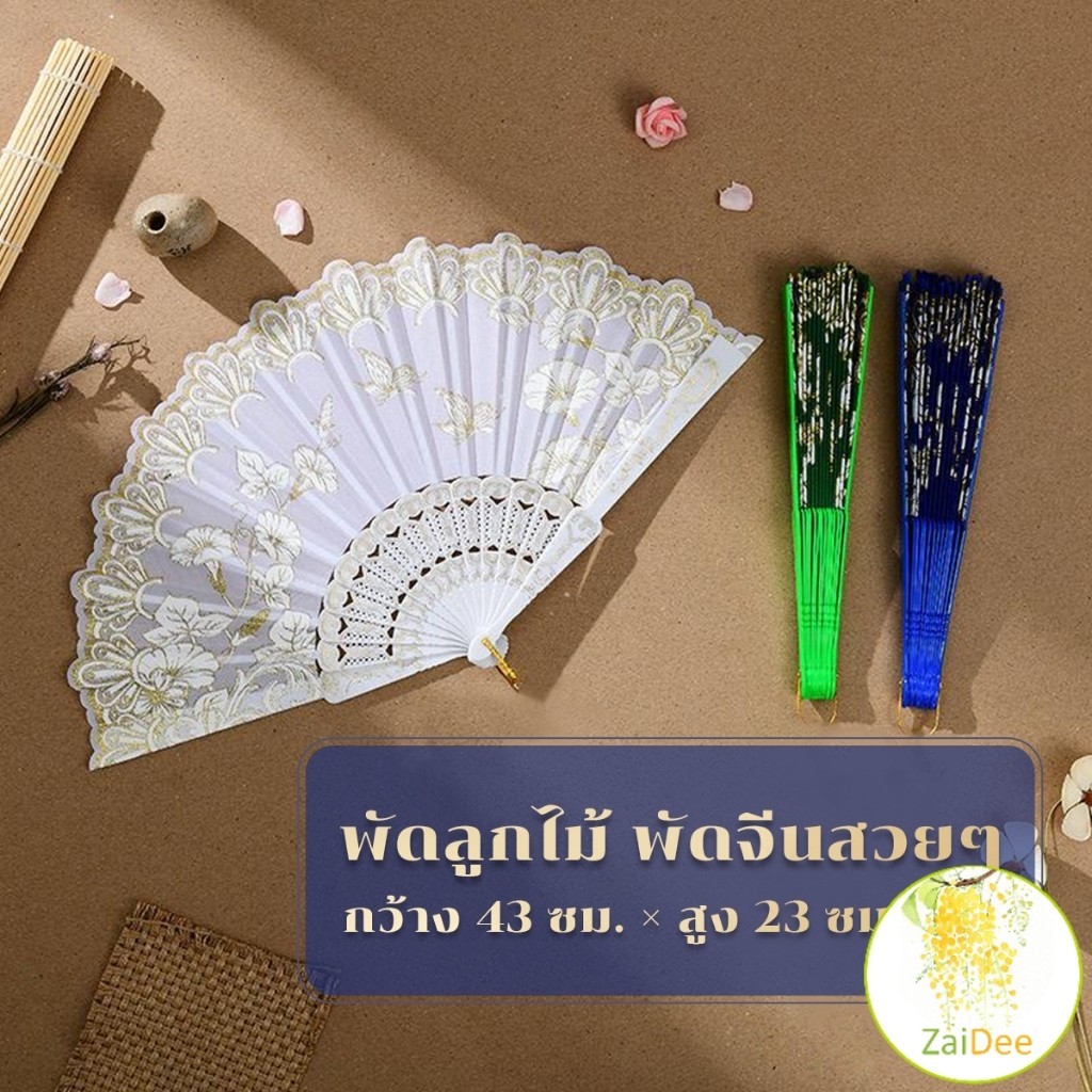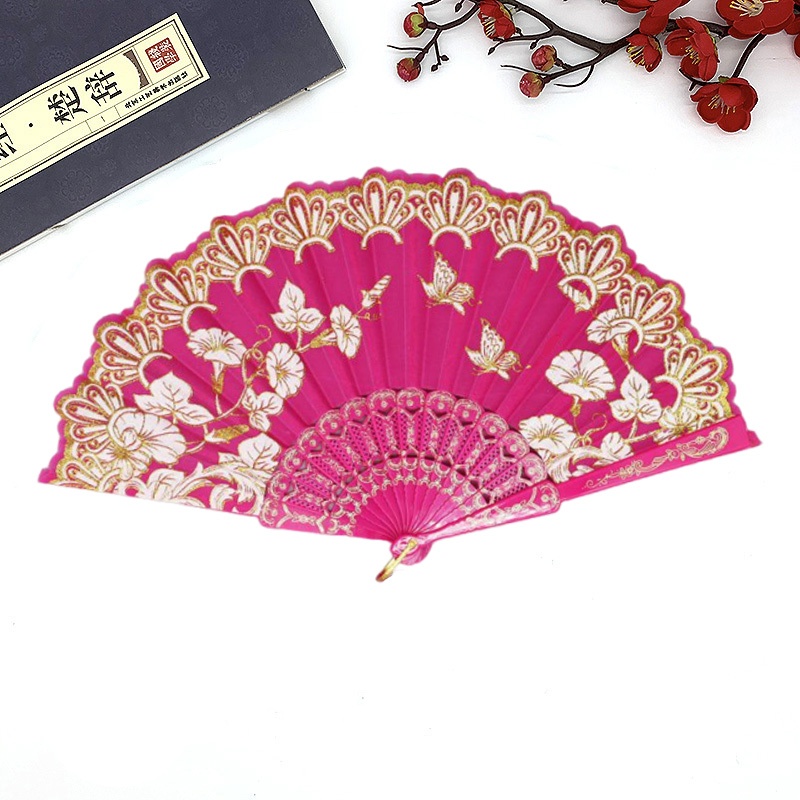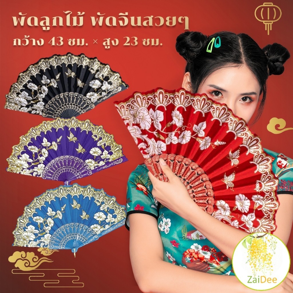 พัดจีนสวยๆ สีแดง (23 cm) พัดผ้าไหม พัดตรุษจีน Hand Fans