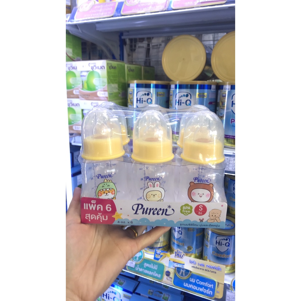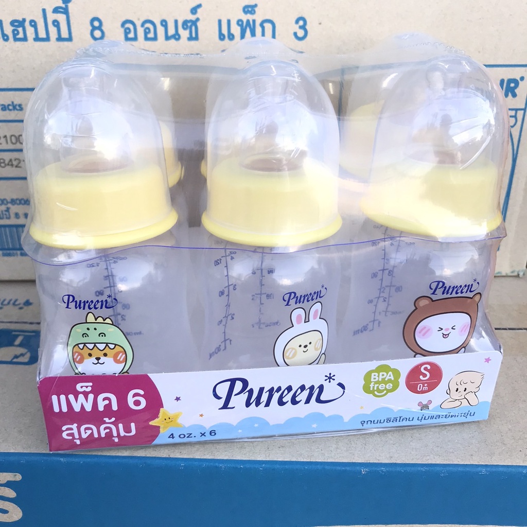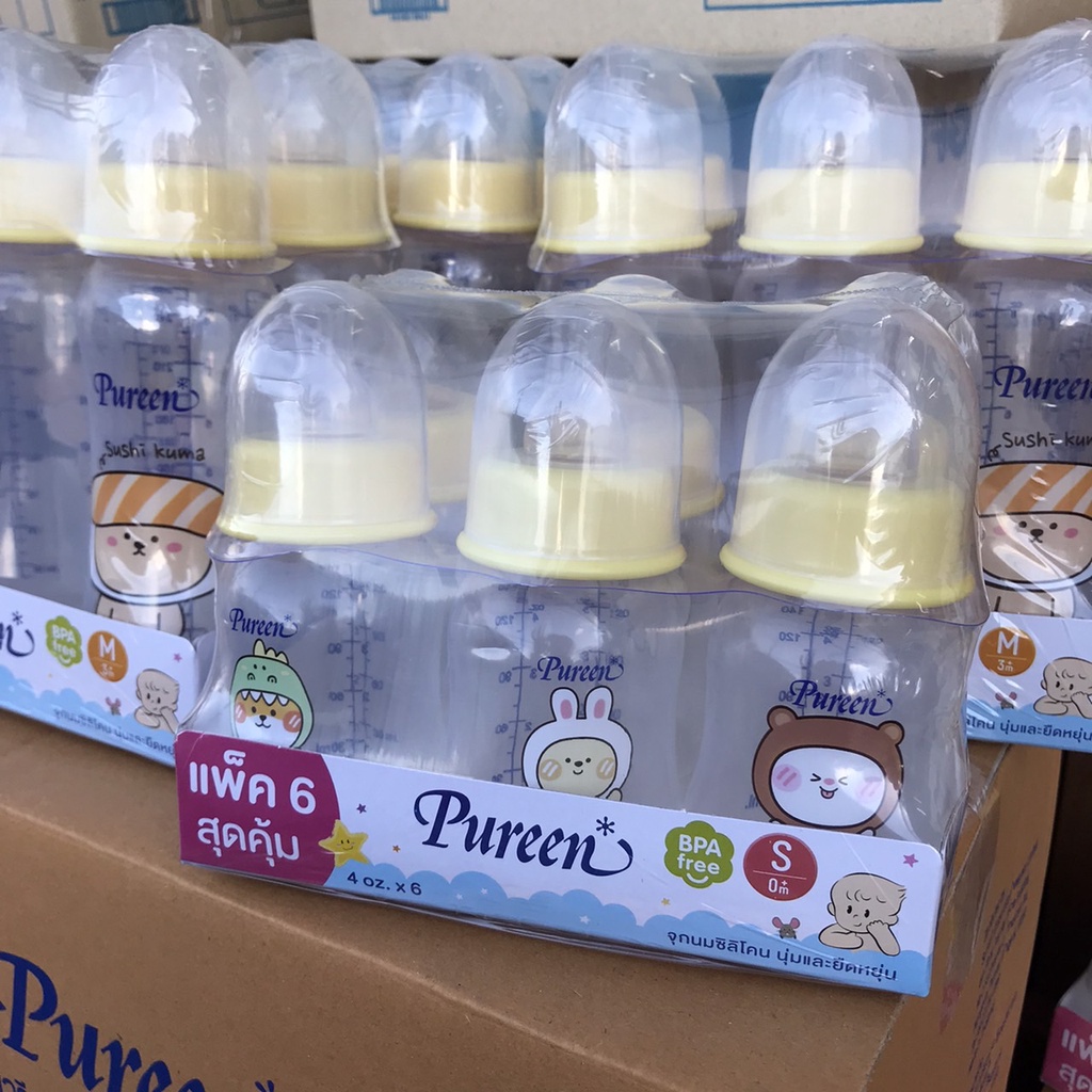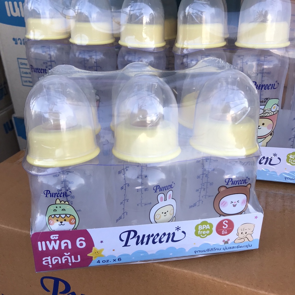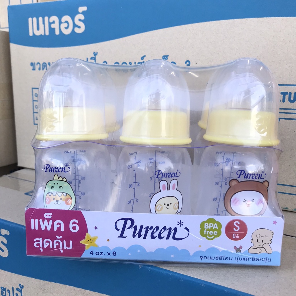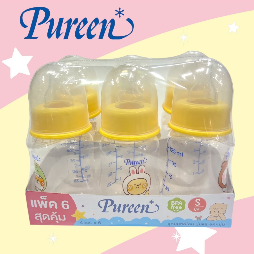ขวดนมPureen แพ็ค6ขวดสุดคุ้มขนาด 4ออนซ์ คอแคบแพ็ค 6 ขวด แถมจุกแรกเกิด รุ่นใหม่ สีเหลือง