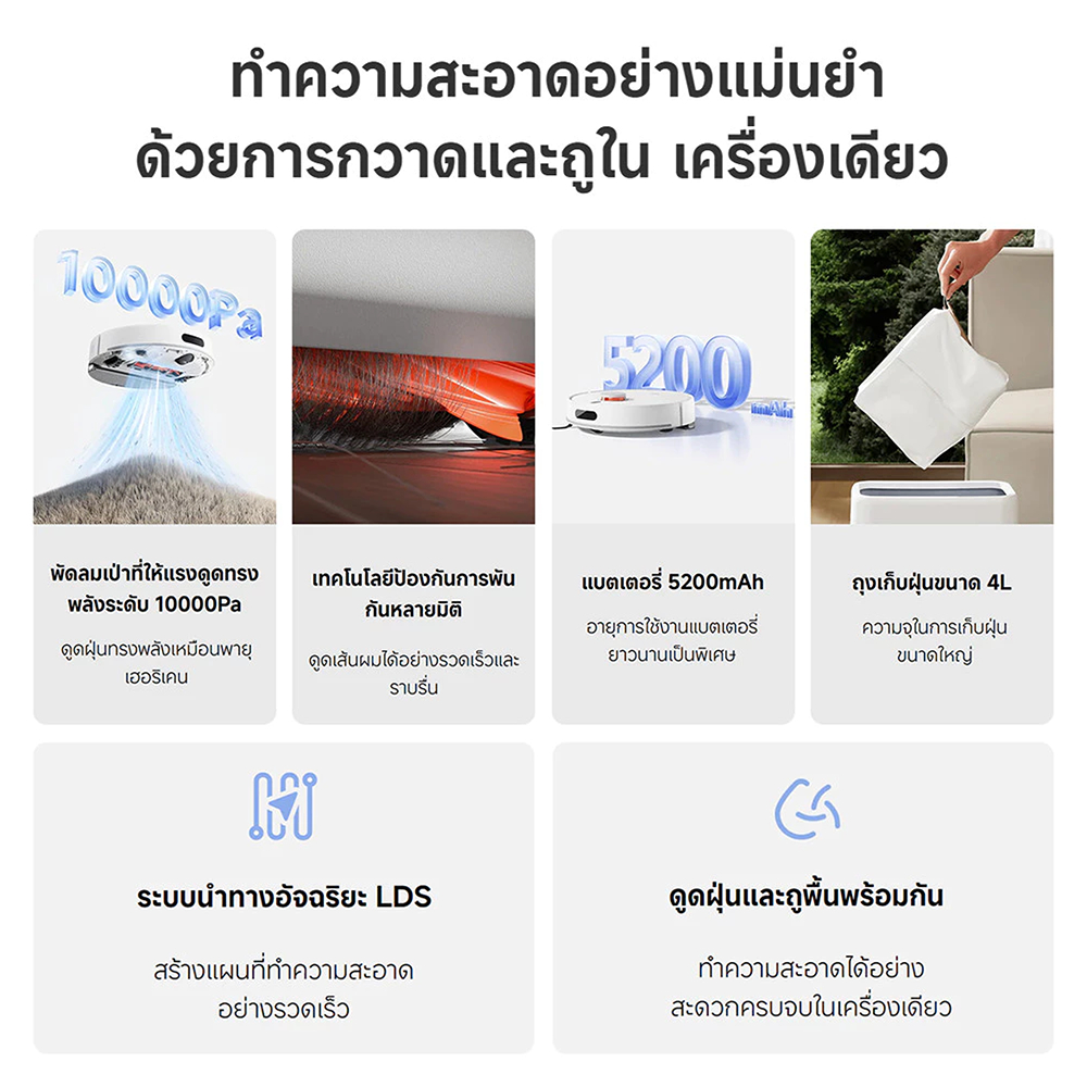 (รับประกันศูนย์ไทย) Xiaomi Robot Vacuum H40 หุ่นยนต์ดูดฝุ่นอัจฉริยะ 10000Pa ดูดฝ ุ่นและถูพื้น 2 in 1 พร้อมแท่นเก็บฝุ่น-1Y