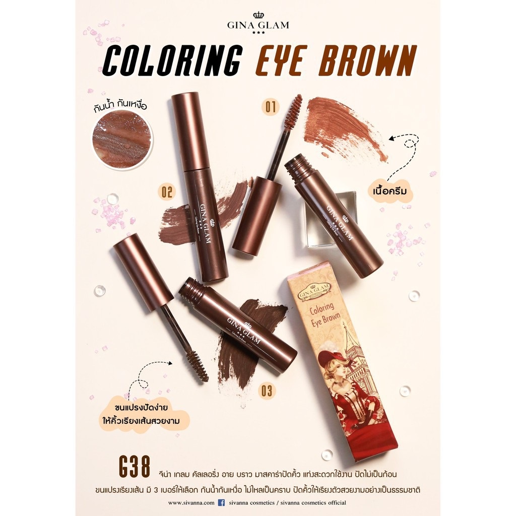 GINA GLAM Coloring Eyebrow – G38 จีน่า เกลม คัลเลอร์ริ่ง อายบราวน์ มาสคาร่าสำหรับปัดคิ้ว