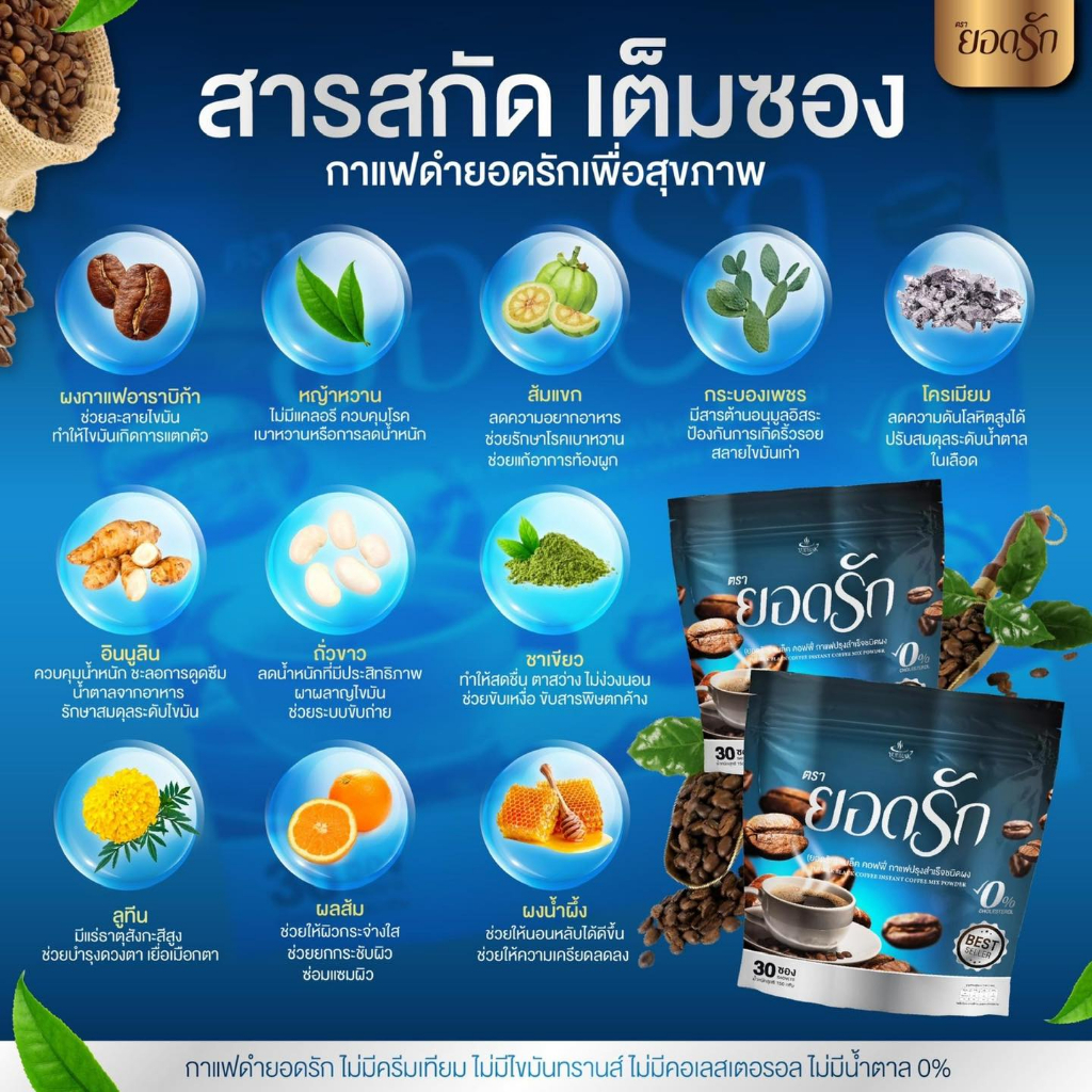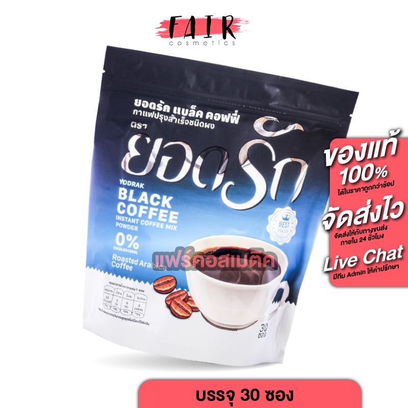 กาแฟดำ Yodrak Black Coffee ยอดรัก แบล็ค คอฟฟี่ [30 ซอง] กาแฟยอดรัก