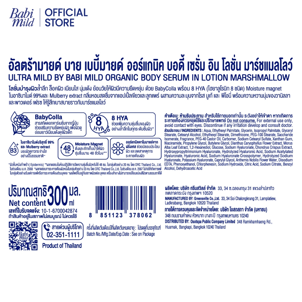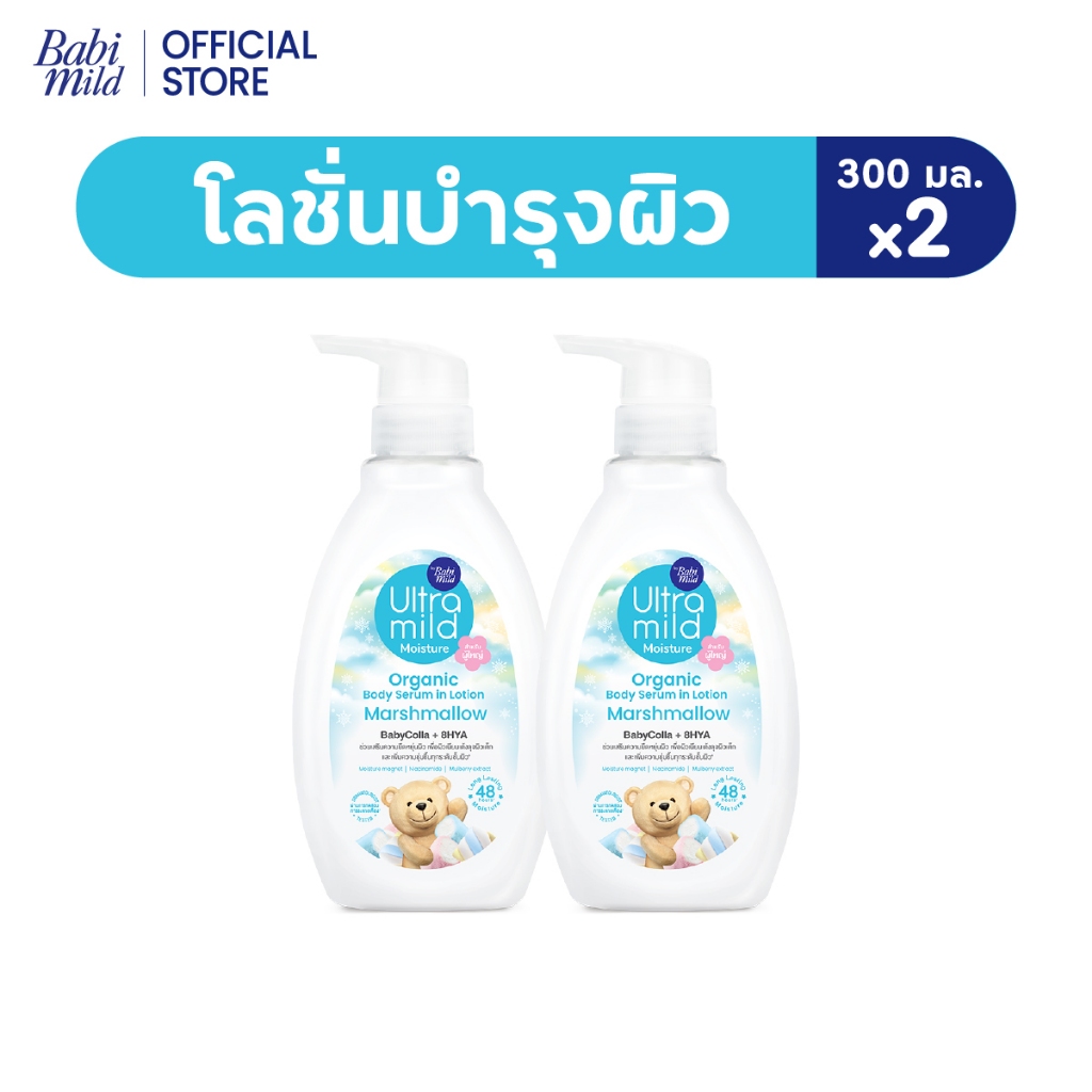 [เลือกแพ็ค]เบบี้มายด์ อัลตร้ามายด์ ออร์แกนิค โลชั่น มาร์ชแมลโลว์ 300ml/ Babi Mild Ultra Mild Serum in Lotion Marshmallow