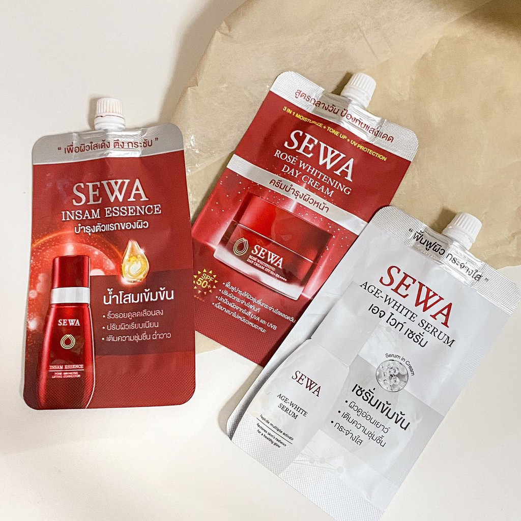 SEWA เซวา ครีมซอง 8 มล. แบบพกพา น้ำโสม / เซรั่ม / เดย์ครีม / โอเวอร์ไนท์ ริ้วรอยลดเลือนลง เติมความชุ่มชื้น