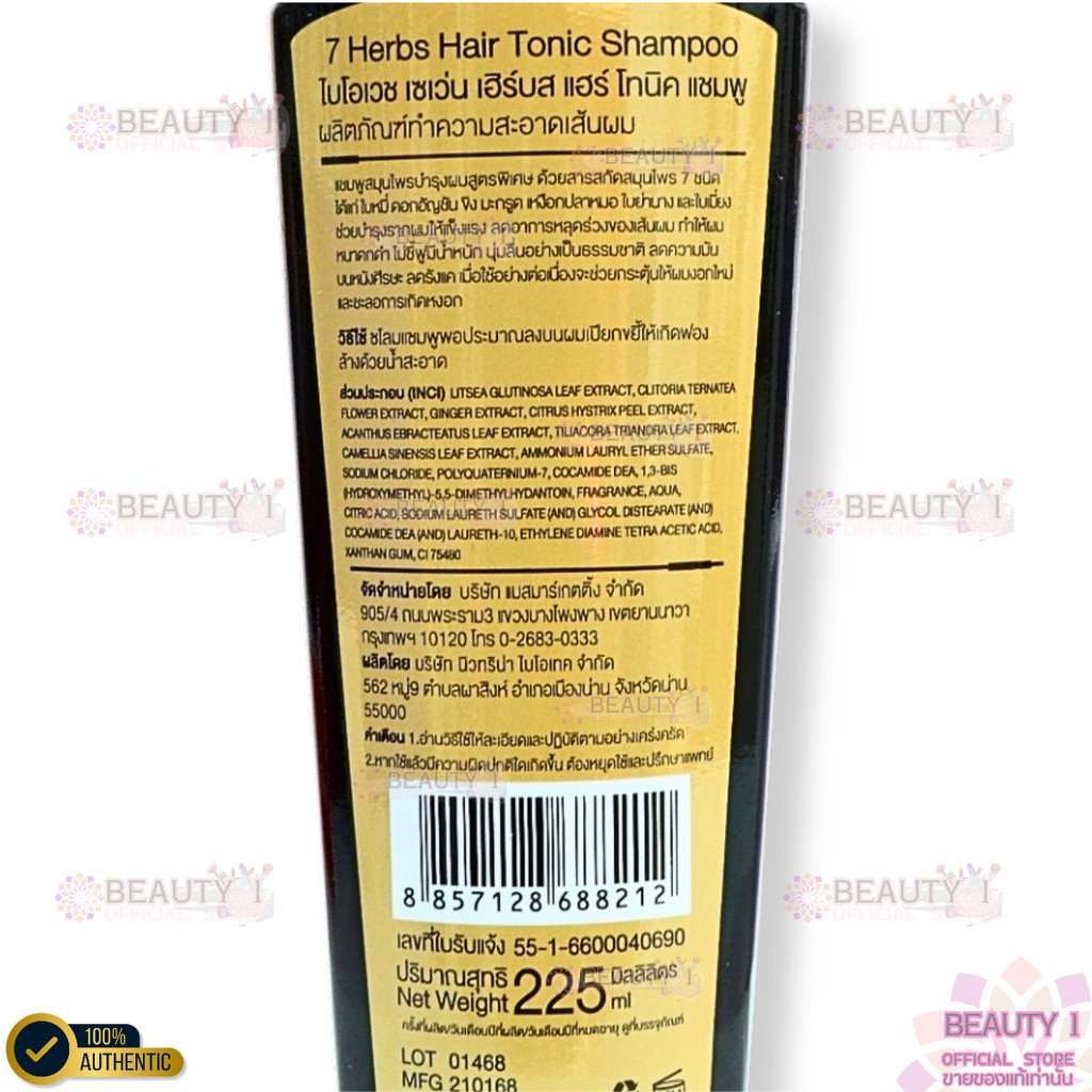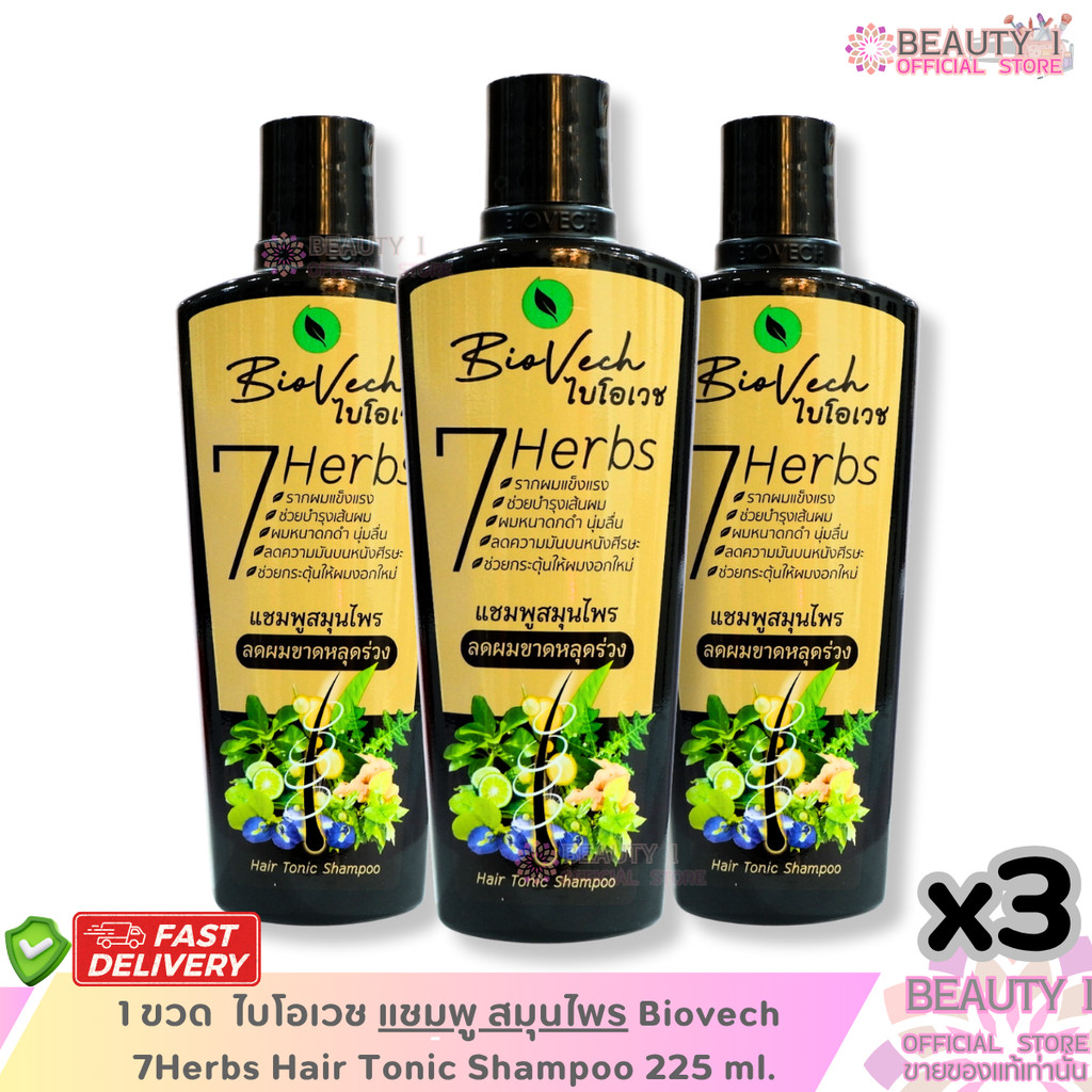 ของแท้ โปร 3 ขวด แชมพูสระผม สมุนไพร ไบโอเวช Biovech 7Herbs Hair Tonic Shampoo 225 ml.