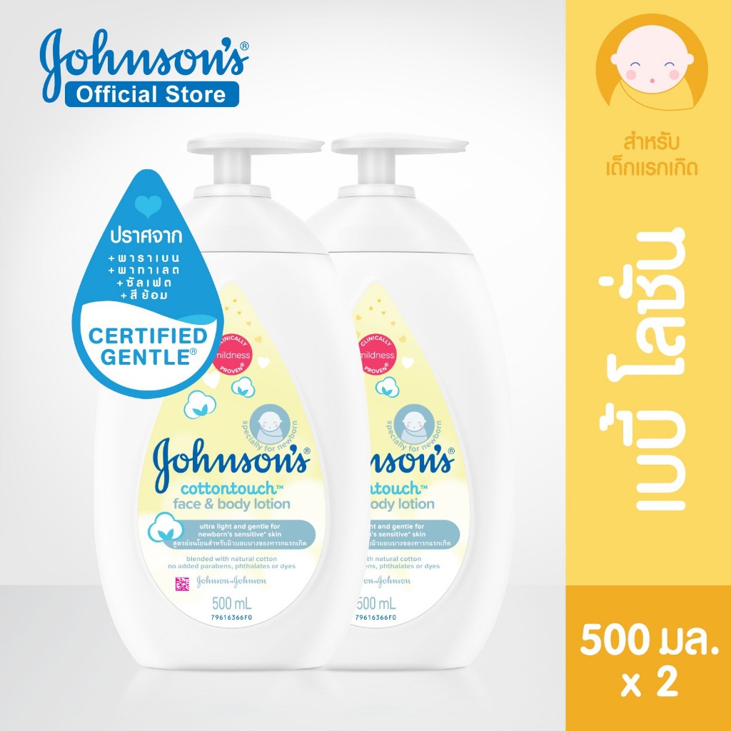 [แพ็คคู่] จอห์นสัน เบบี้ โลชั่นเด็ก หน้าและตัว เฟซ แอนด์ บอดี้ โลชั่น คอตตอน ทัช 500 มล.x2