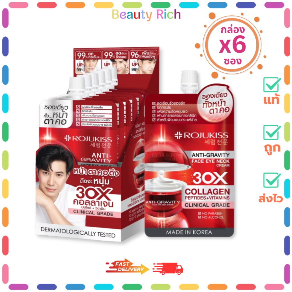 (กล่อง 6 ซอง) Rojukiss Anti-Gravity Face Eye Neck Cream - โรจูคิส เฟซ อาย เนค ครีม (8 ml.)