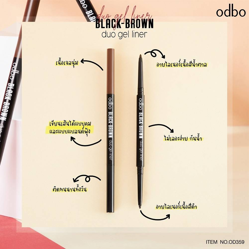 ♦️ของแท้·ส่งด่วน·ถูก♦️Odbo Black-Brown Duo Gel Liner Eyeliner #OD359 : โอดีบีโอ ดูโอ้ เจล อายไลเนอร์ x 1 ชิ้น dayse