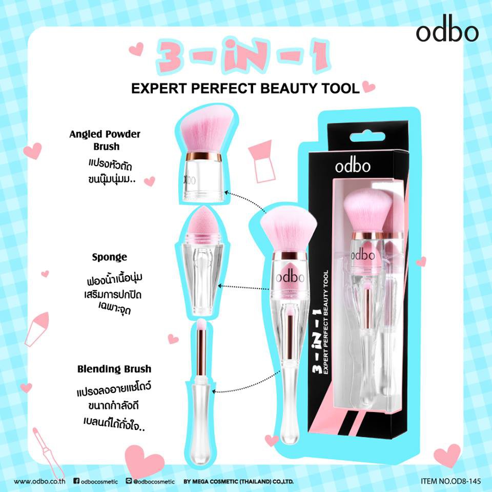 🌟 แปรงรองพื้น แบบ 3 IN 1 โอดีบีโอ ODBO 3 IN 1 EXPERT PERFECT BEAUTY TOOL OD8-145