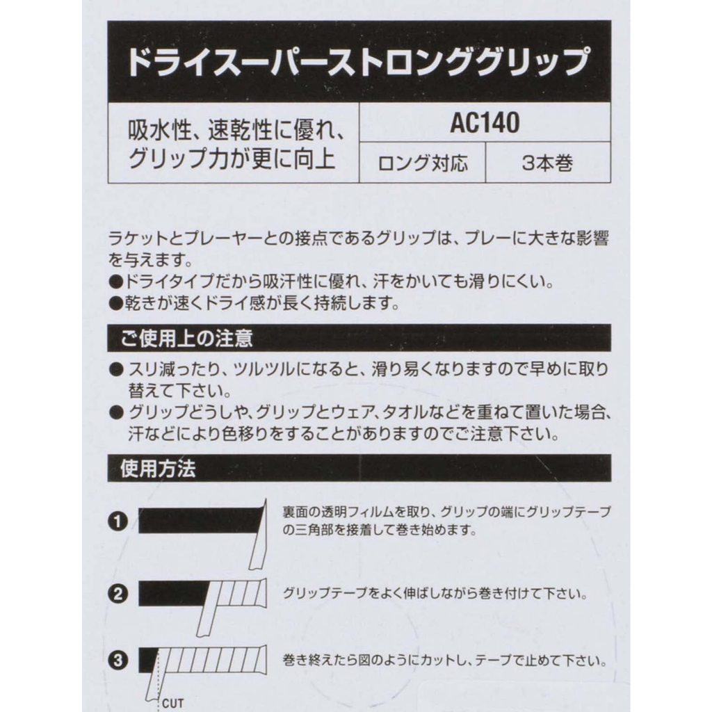 YONEX เทนนิส แบดมินตัน กริปซูเปอร์สตรองแบบแห้ง (3 ชิ้น) Japan Sports