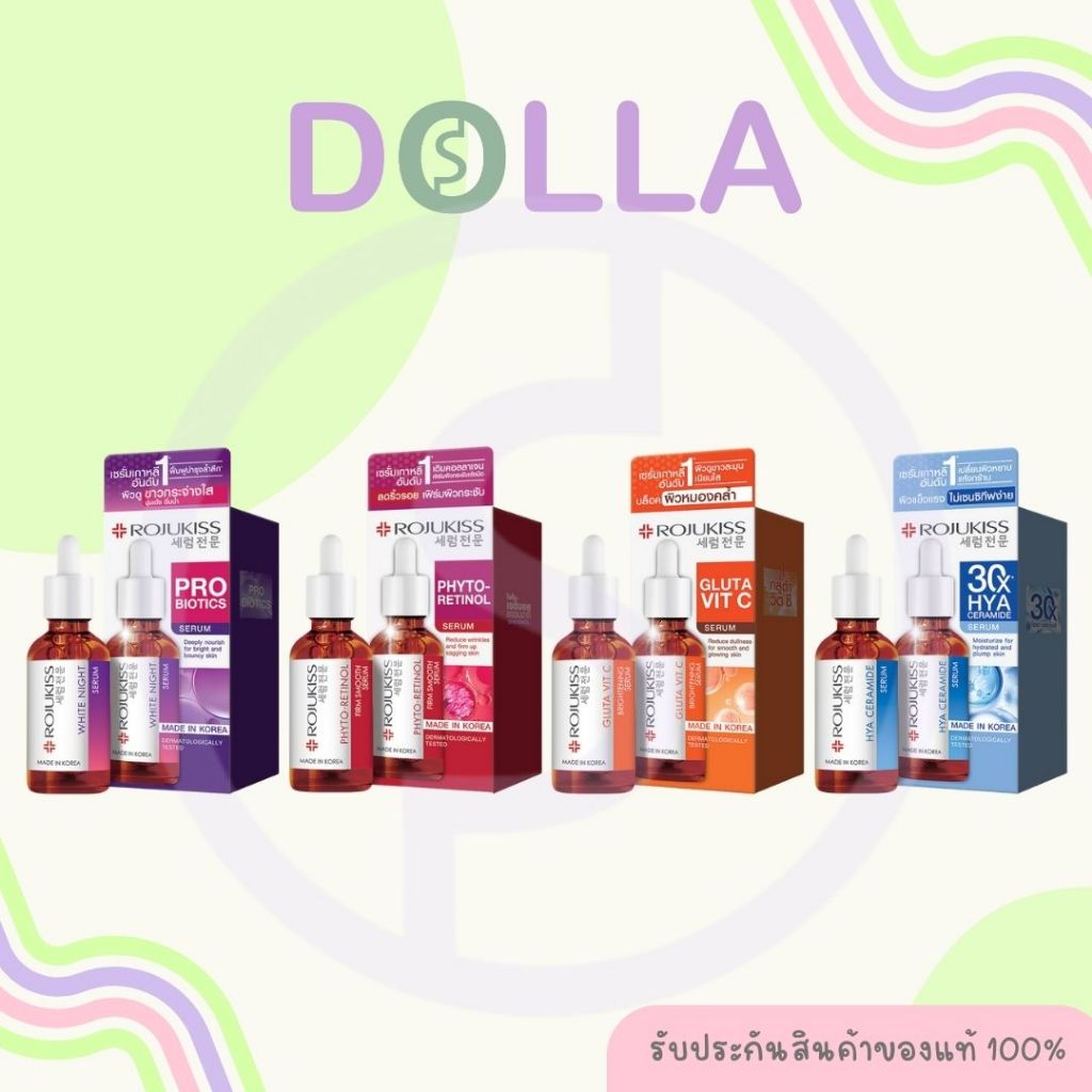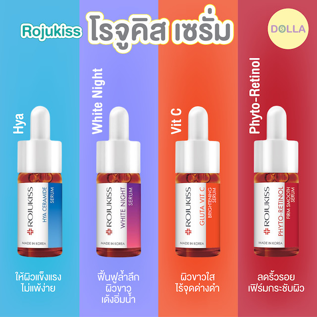 [สูตรใหม่ 30ml] โรจูคิส ไฟโต เรตินอล ,กลูต้า วิต ซี ,ไฮยา เซราไมด์ , ไวท์ไนท์ เซรั่ม 30ml Rojukiss Serum 30ml