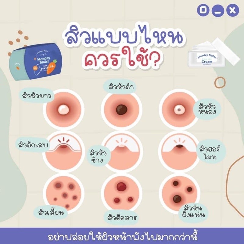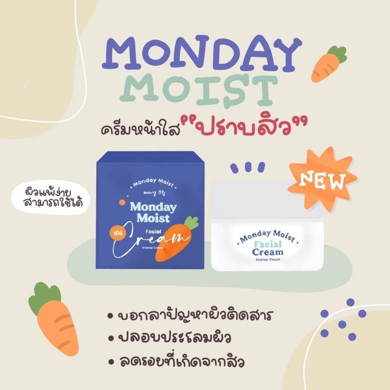 เซลล์ไม่มีกล่อง** Mondaymoist facial cream 🥕 ครีมแครอท ลดสิว 10 g.