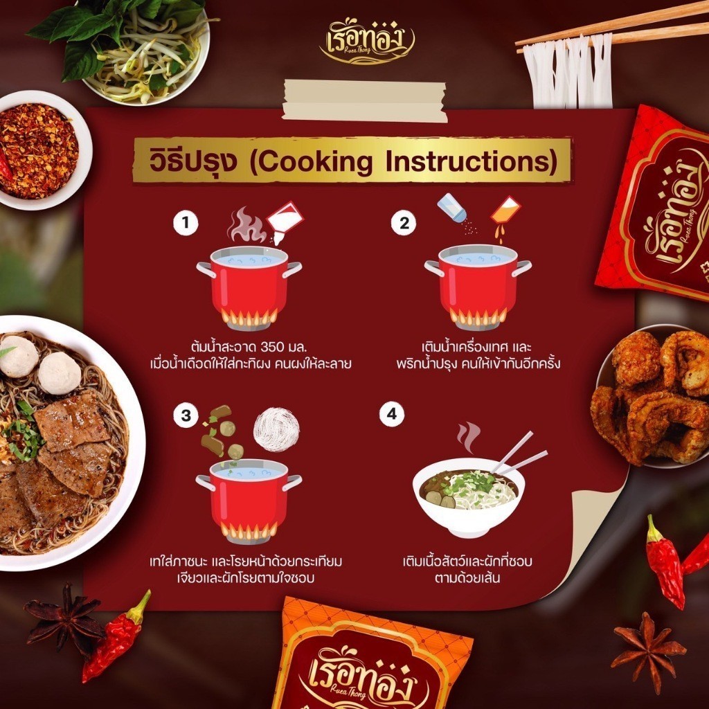 [SET] RUEATHONG เรือทอง ก๋วยเตี๋ยวเรือ กึ่งสำเร็จรูป 130 กรัม เส้นนุ่ม ทานง่าย น้ำซุปเข้มข้น หอมอร่อย อิสลามทานได้ พร้อม
