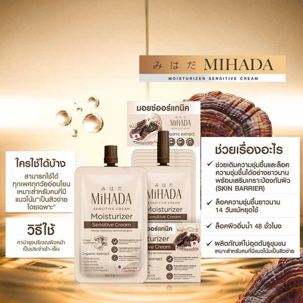 [กล่อง 6 ซอง] MiHADA Moisturizer Sensitive Cream มอยส์เห็ด มิฮาดะ มอยเจอร์ไรเซอร์ บำรุงผิว ชุ่มซื่น 7 กรัม