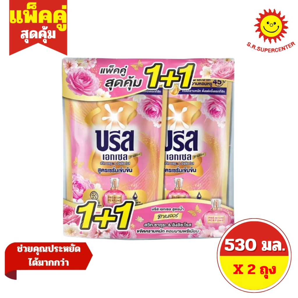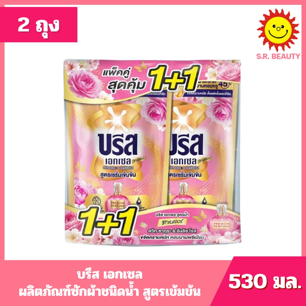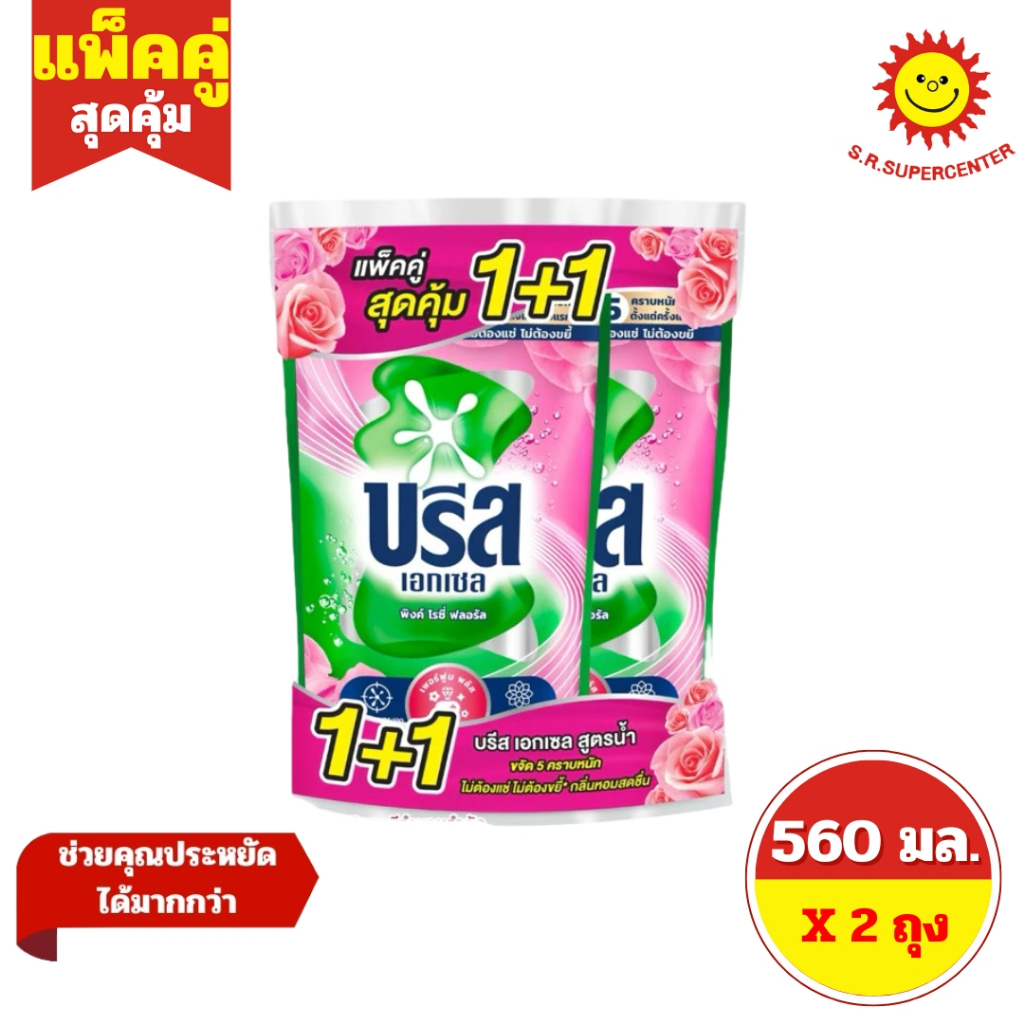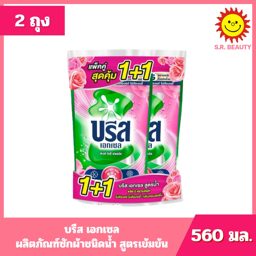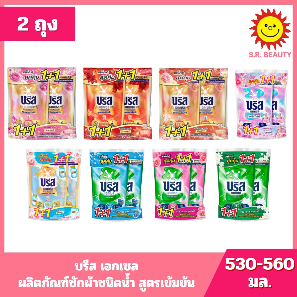 [ แพ็คคู่ ] Breeze บรีส เอกเซล ผลิตภัณฑ์ซักผ้าชนิดน้ำ สูตรเข้มข้น ขนาด 530-560 มล. (2ถุง) 8 สูตร