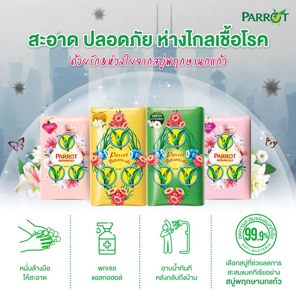 Parrot แพรอท สบู่นกแก้ว ขนาด 105 กรัม / 70 กรัม สบู่ก้อน อาบน้ำ กลิ่น เพอร์ฟูม บลูโอเชี่ยน
