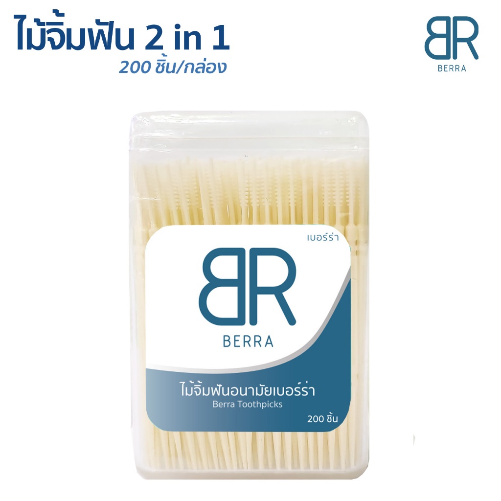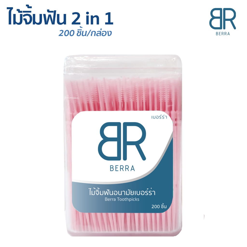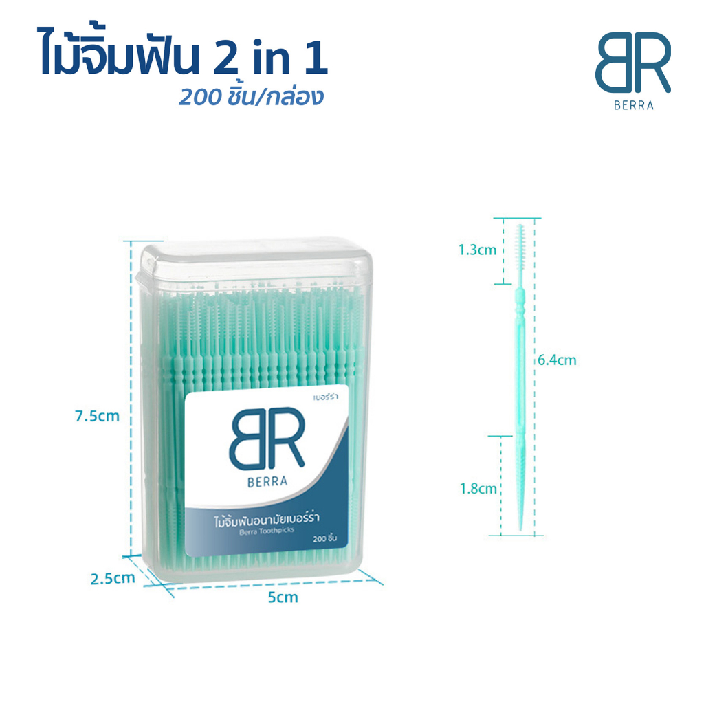 BERRA ไม้จิ้มฟัน 2in1 แบบกล่อง 200 ชิ้น 2หัว หัวแหลม,หัวก้างปลา คุณภาพดี ทำความสะอาดซอกฟัน 5สีให้เลือกแบบ ไหมขัดฟัน
