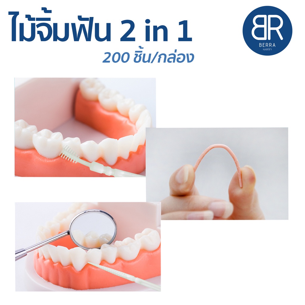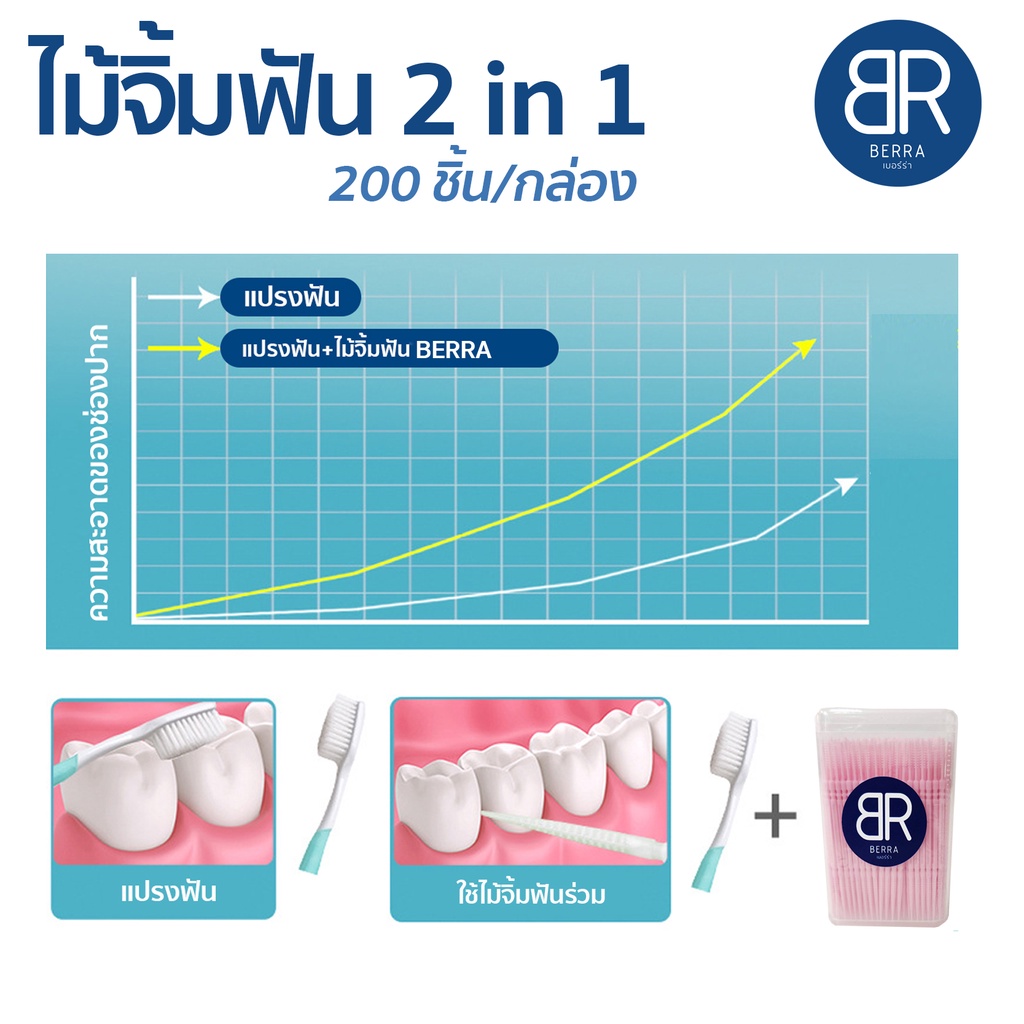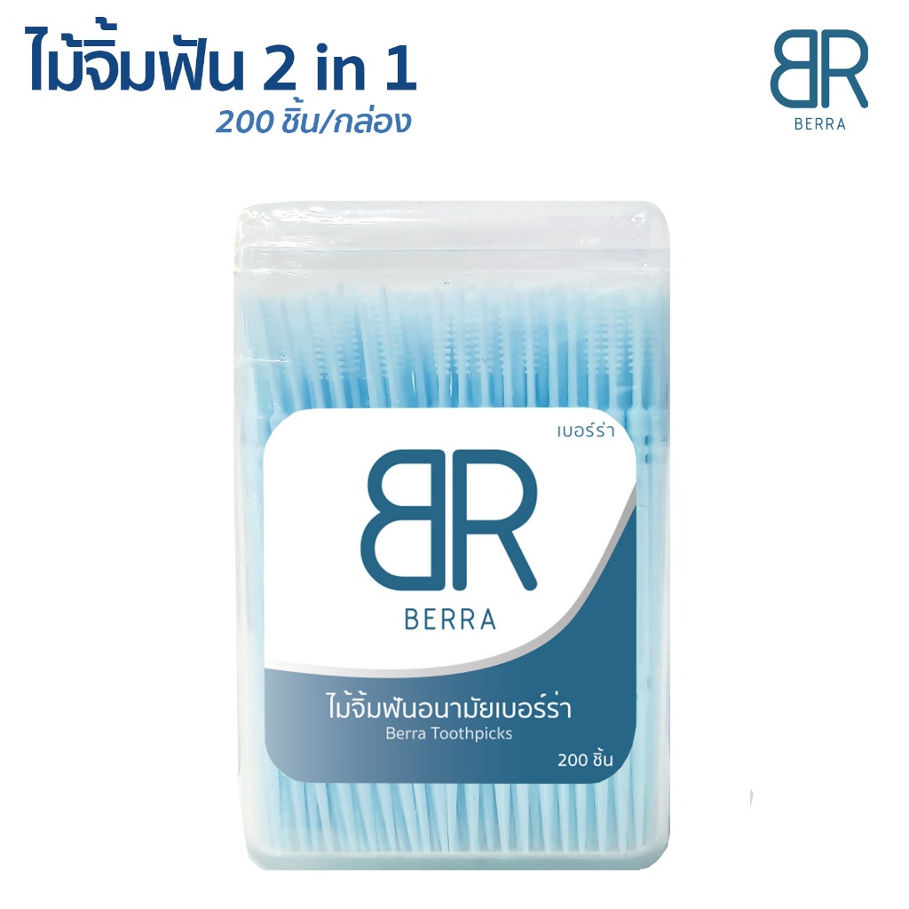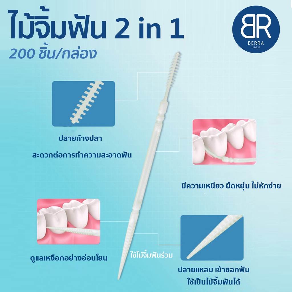 BERRA ไม้จิ้มฟัน 2in1 แบบกล่อง 200 ชิ้น 2หัว หัวแหลม,หัวก้างปลา คุณภาพดี ทำความสะอาดซอกฟัน 5สีให้เลือกแบบ ไหมขัดฟัน
